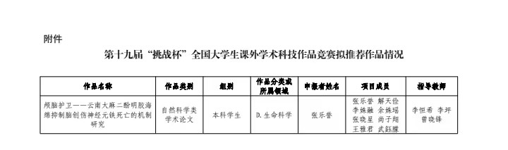 第十九届“挑战杯”全国大学生课外学术科技作品竞 赛拟推荐作品公示