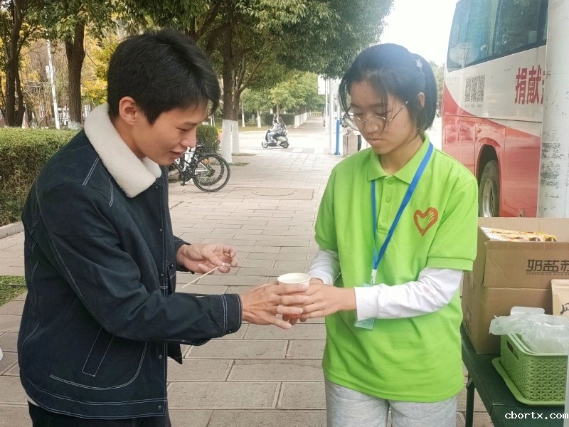 在献血前,志愿者们叮嘱每位同学喝下三杯糖水,解释献血前后多喝水的好处。待献完血后,志愿者们注意着献血者的身体情况,做好最后的服务工作。