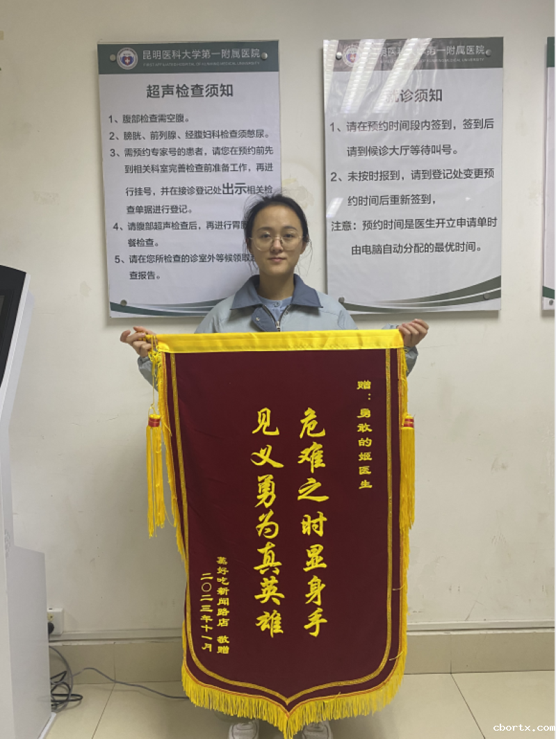 12月8日,18luck备用登录附一院2021级研究生姬向瑜收到了昆明市五华区新闻路蒸好吃快餐店送到医院的一面锦旗,一段挺身而出、临危急救患者的感人故事随之被大家知晓。