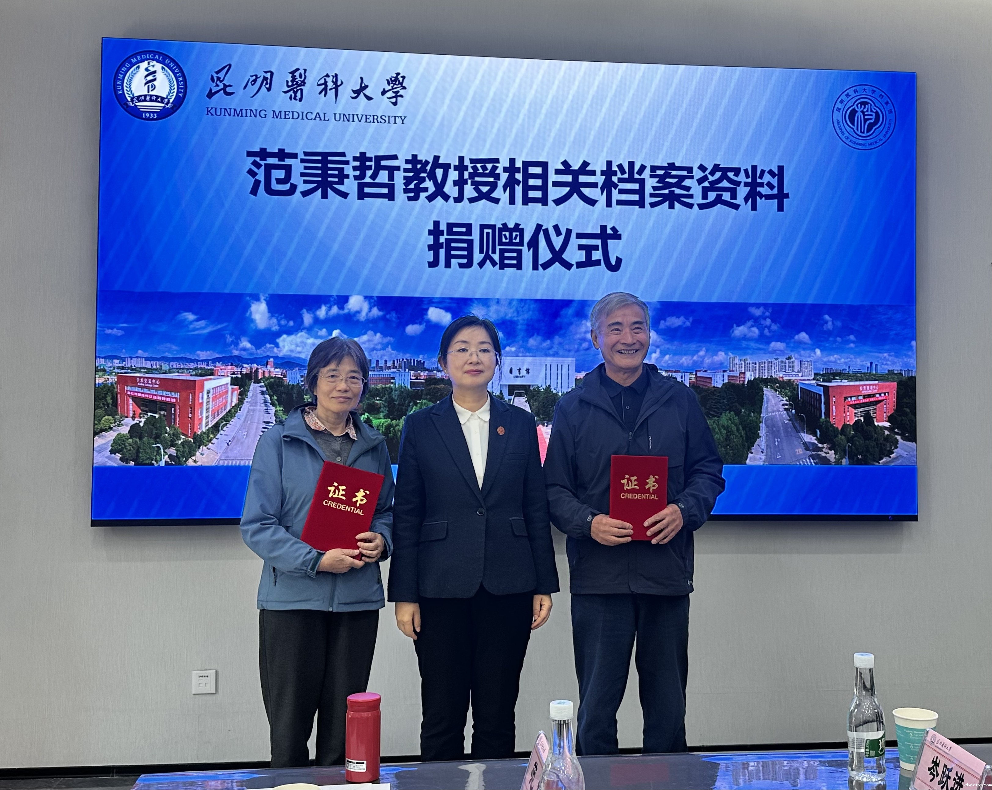 3月28日,省立云南大学医学院首任院长范秉哲相关档案资料捐赠仪式在18luck备用登录呈贡校区举行。范秉哲亲属江梅达女士、万立人先生及1977级医学系部分校友,学校党委常委、副校长奚春睿,党委宣传部、档案馆负责人等参加捐赠仪式。