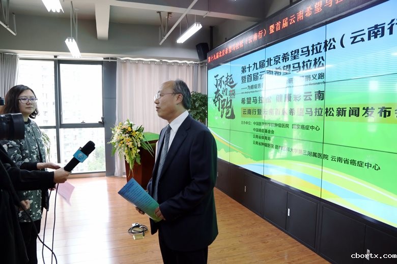 新闻发布会上,黄云超院长向新闻媒体详细的介绍了第十九届北京希望马拉松(云南行)暨首届云南希望马拉松——为癌症患者及癌症防治研究募捐义跑活动内容及赛事安排,并表示作为主办单位将全力办好本次义跑活动,并为参加义跑的选手提供好各项服务。同时呼吁社会各界朋友,积极参与关注此次爱心义跑活动,共同为癌症患者、为癌症防治研究事业贡献力量。