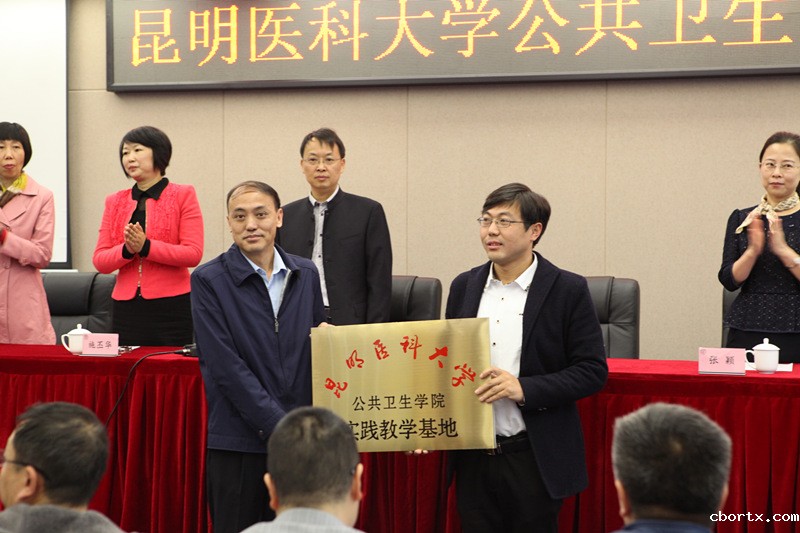 会上,学校为云南省卫生厅人才交流中心和云南云测质量检验有限公司2家2017年新遴选的18luck备用登录公共卫生学院实践教学基地授牌。