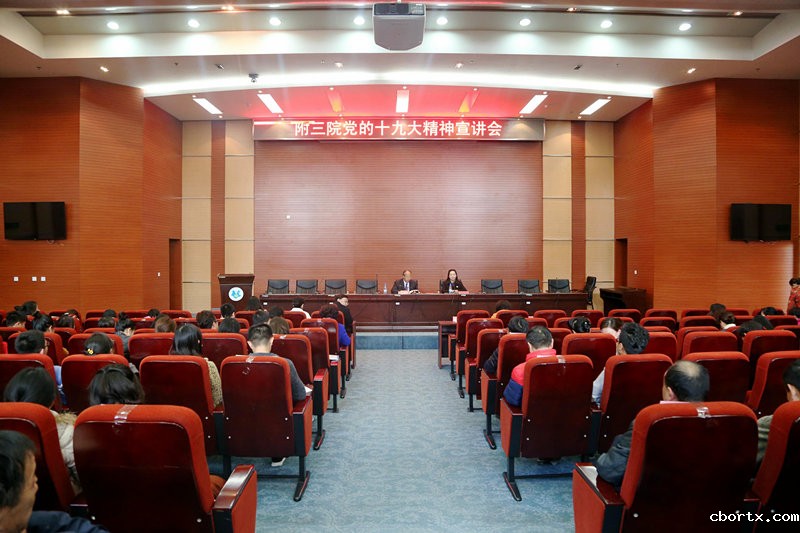 12月1日下午,学校第三附属医院举办党的十九大精神宣讲会暨学习贯彻党的十九大精神专题党课,学校副校长、第三附属医院党委书记吴红明作党的十九大精神宣讲。