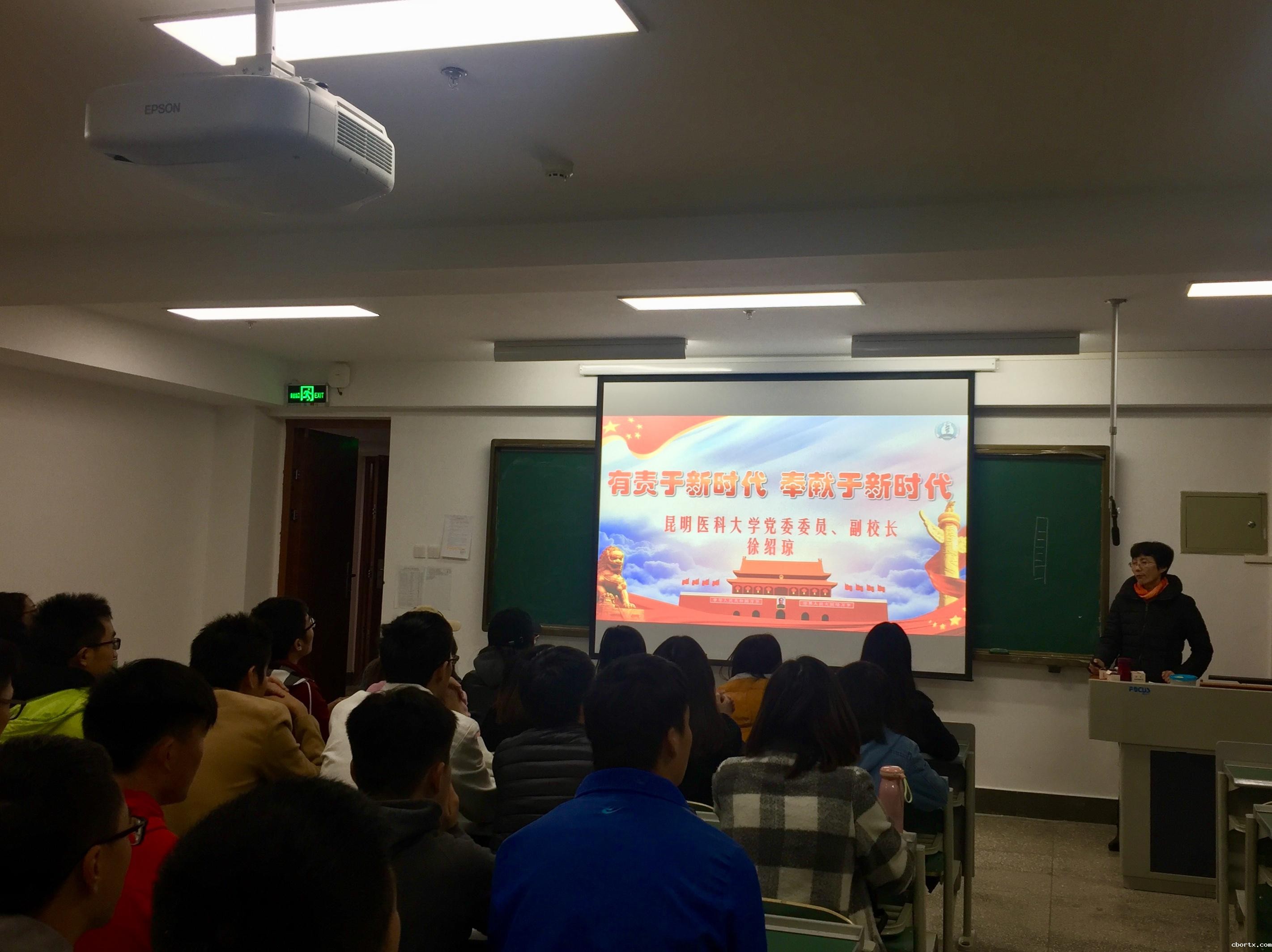12月4日晚,由副校长徐绍琼主讲的“有责于新时代,奉献于新时代”十九大精神宣讲会在18luck备用登录平政校区知行楼303教室举行。平政校区管委会主任吴美芸、2015级法学班全体同学参加了本次讲座。
