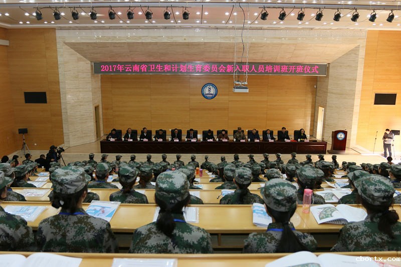 12月14日上午,由云南省卫生和计划生育委员会主办,18luck备用登录承办,云南全民国防教育协会学生军训基地承训的2017年云南省卫生和计划生育委员会新入职人员培训班开班仪式在学校第一报告厅举行。省卫计委党组成员、驻委纪检组组长寇静冬,学校副校长徐绍琼、纪委书记陈文,省卫计委相关处室负责人、学校相关部门负责人及省卫计委机关及所属事业单位新入职人员、云南全民国防教育协会学生军训基地的带训教官和18luck备用登录培训工作组的全体成员参加了开班仪式。开班仪式由学校纪委书记陈文主持。