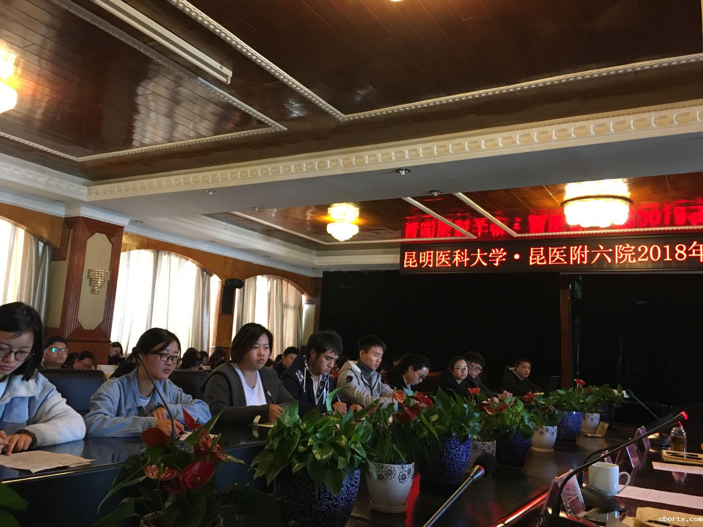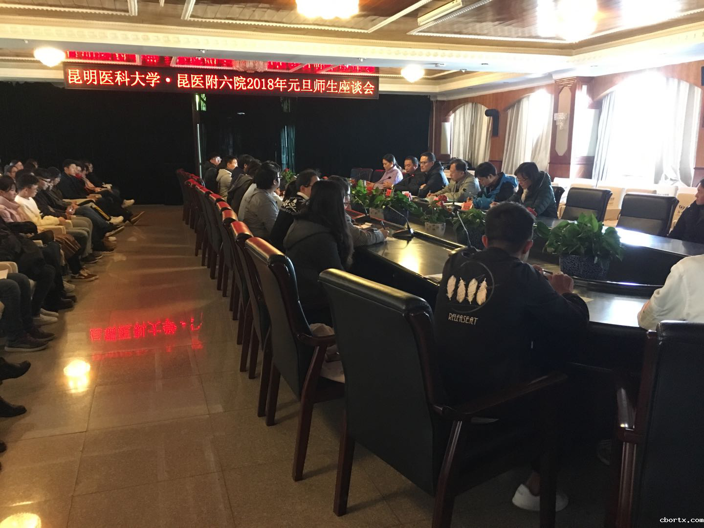 12月26日下午,学校党委副书记周佳一行赴玉溪市人民医院看望实习基地同学,举行师生座谈会并宣讲党的十九大精神。玉溪市人民医院院长曾勇、副院长张锡光及学校公共卫生学院负责人和全体实习同学参加座谈会。