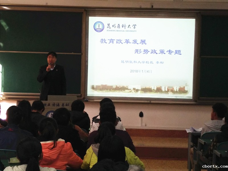 李松在系统回顾党的十八大以来教育改革发展取得的成就和讲解党的十九大对教育改革发展作出新部署的基础上,对教育改革发展形势、高等教育改革发展形势、高等医学教育改革发展形势作了深入浅出的讲解。他联系国内外实际和云南实际,重点就云南高等教育、云南高等医学教育改革发展形势、存在问题、发展机遇作了深入分析。李松强调,推进教育发展是教和学双方共同的责任。李松勉励同学们认清形势、增强危机意识和责任意识,发奋学习、锤炼思想,增强本领,为云南高等教育、高等医学教育的发展做出贡献。
