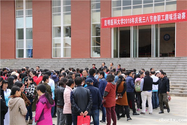 3月9日下午,由校工会、校女工委员会组织开展的庆祝三八节系列活动——教职工趣味活动赛在呈贡校区学生会堂广场举行。校党委副书记、工会主席周佳,副校长吴红明、徐绍琼,校工会常务副主席、女工主任张联玉,各部门负责人及500余名教职工参加了活动。