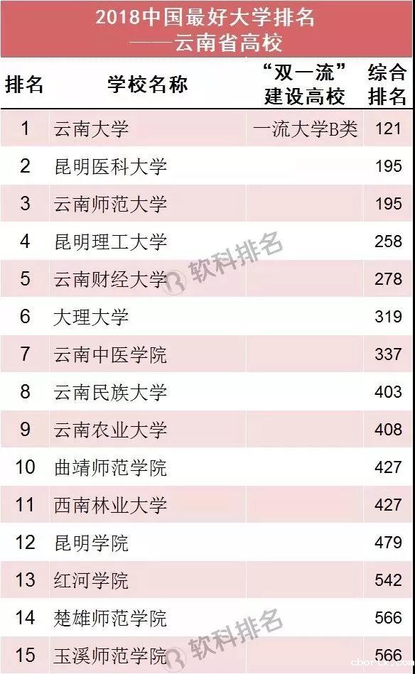 近日,作为全球四大大学排名系统之一,拥有15年历史的“世界大学学术排名(ARWU)”公布了2018“中国最好大学排名”。18luck备用登录排名195位,居云南省第二位。