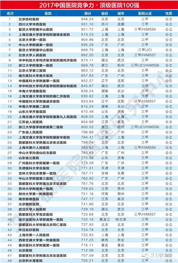据悉,“2017中国医院竞争力排行榜”是根据艾力彼“第三方医院分层评价体系”系列排行榜。通过对2016年度的排名结果进行横向和纵向的对比研究、总结分析,从而形成的年度行业报告。该项排行榜自2010年启动以来,主办方一直秉承“数字说话、时间说话”的精神及客观、科学和公正的原则开展,从而得到国内各地区的医疗机构支持。