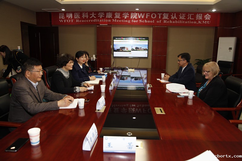 上午,学校召开复认证现场考察工作汇报会。学校副校长李燕代表学校致欢迎辞并介绍学校建设发展情况,康复学院副院长敖丽娟汇报了康复学院专业建设发展情况,认证专家Marilyn主席和Lyle教授就此次复认证和现场考察工作做了说明和要求。