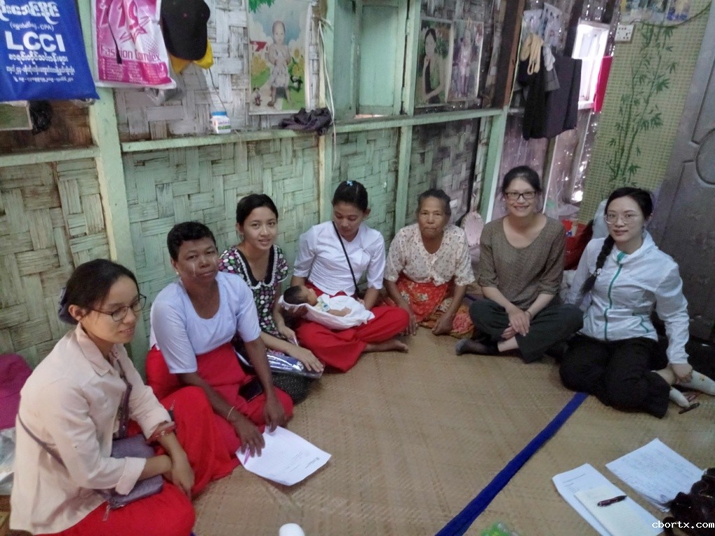 该项目缅甸实施地区为仰光市城乡结合地带的贫困人口聚集的棚户区。抵达仰光后,评估组首先聆听了项目干预实施方玛丽斯特普国际缅甸办公室的工作汇报,随后利用5天时间深入到六所乡村医疗机构和六个社区对141名卫生机构管理者、医务人员和孕产妇进行个人访谈,核对各机构孕产保健服务、计划生育服务台账并收集相关数据;现场活动结束后,召开“妇幼健康干预试点”缅甸现场信息发布会,评估组受邀就缅甸试点地区的项目实施效果进行大会汇报。在时间紧、任务重、条件有限的情况下,经过全体师生的艰苦努力,按期顺利完成终期评估各项工作。