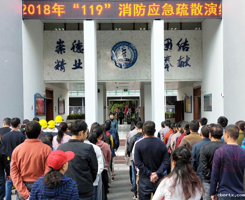 11月9日,学校在平政校区开展“119消防宣传日”消防应急演练疏散活动。校党委委员、副校长徐绍琼,平政校区管委会、继续教育学院、离退休工作处,驻校区学生、保卫、后勤等相关职能部门以及第一临床医学院、第二临床医学院、护理学院、药学院、公共卫生学院、人文学院、法医学院等师生400余人参加了演练。
