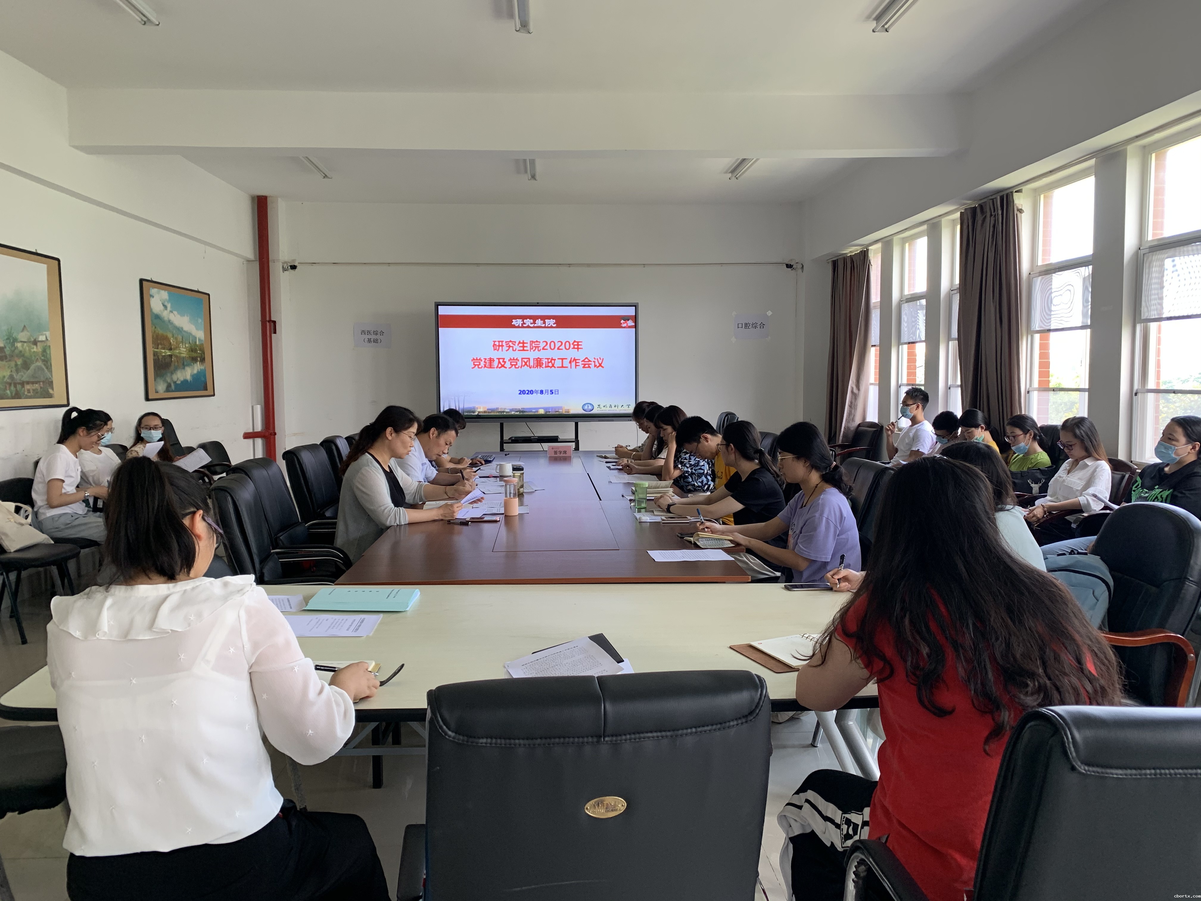 8月5日下午,研究生院党委在至真楼315会议室召开2020年党建及党风廉政工作会议。研究生院党委委员、非直属培养单位研究生党支部书记、支委30人参加了会议。会议由研究生院党委委员、副院长皮江媛主持。