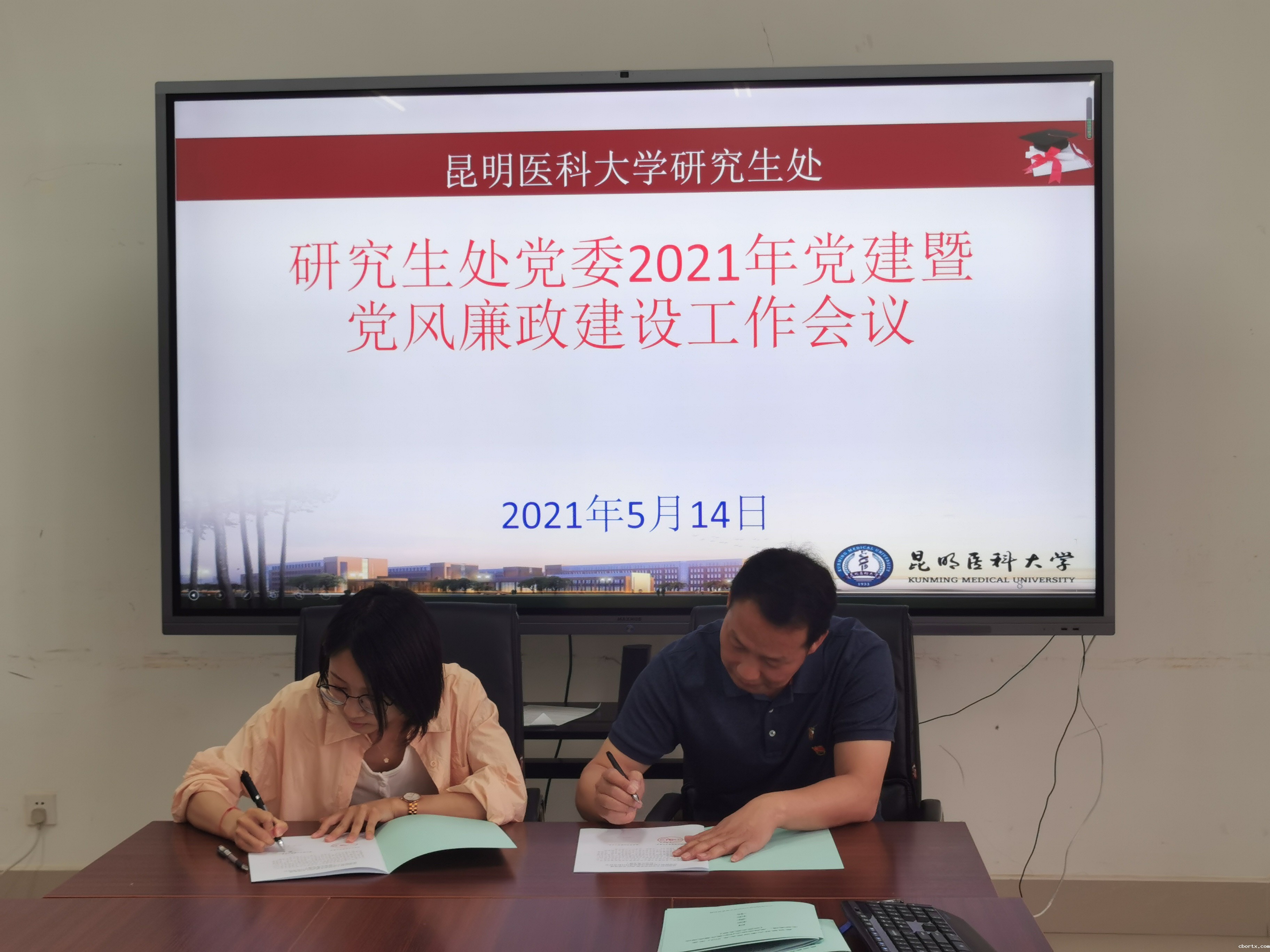 2021年5月14日下午,研究生处在呈贡校区至真楼315会议室召开了研究生处2021年党建暨党风廉政建设工作会。研究生处党委委员、所属师生党支部书记、支委参加了会议。会议由党委副书记张媛主持。