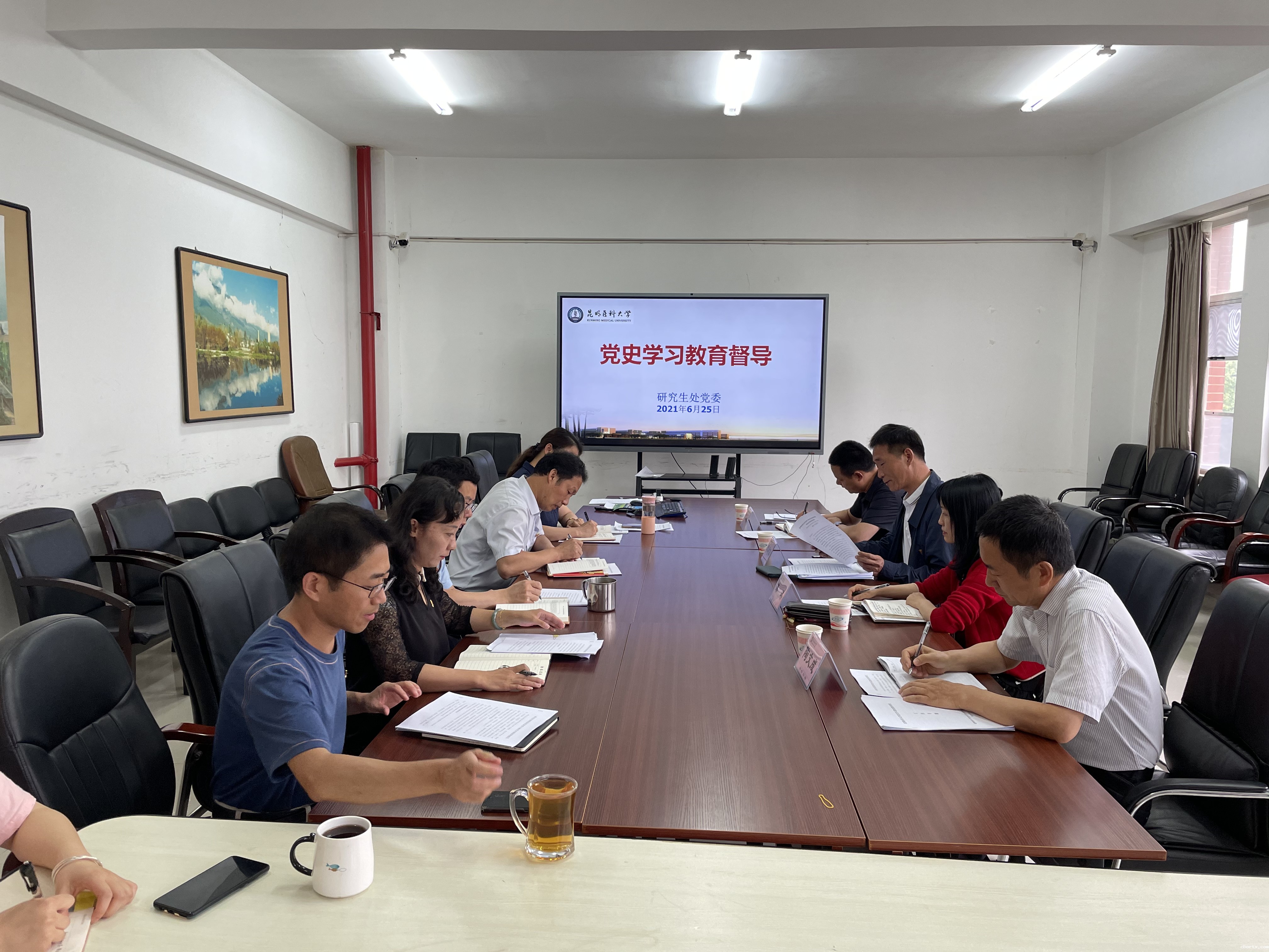 6月25日上午,学校党委委员、副校长李利华,人事处处长革琳等一行4人代表学校党委党史学习教育第八督导组,到研究生处督导党史学习教育情况。研究生处全体党委委员、教师党支部书记及支部委员参加了督导会,会议由李利华副校长主持。
