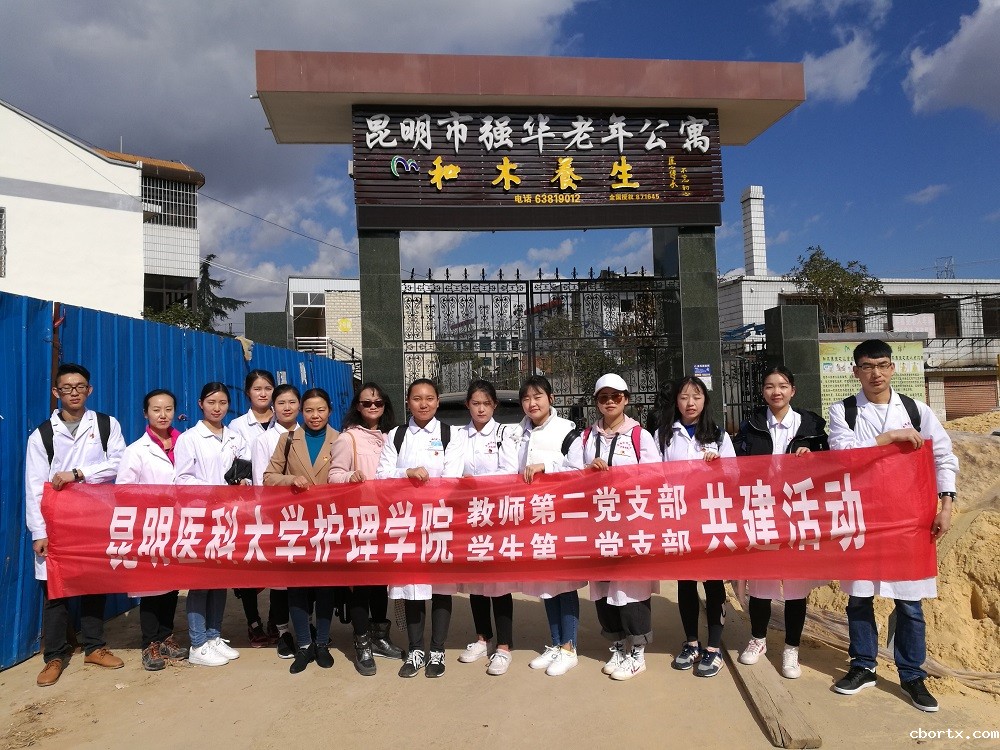 上午8:30护理学院教师第二党支部、学生第二党支部2名党员教师和12名学生党员,在金马街道社区卫生服务中心5名医护党员的带领和陪同下,来到了昆明市强华敬老院为50名老人进行了免费的健康体检。