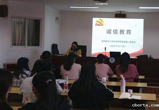 2019年11月29日,护理学院学生第一党支部在护理学楼501报告厅开展党员党风廉政教育。