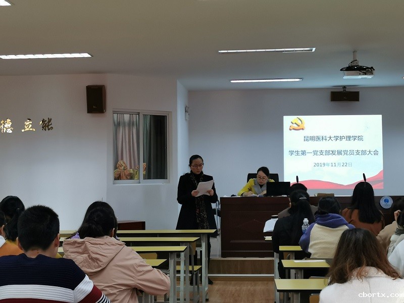 11月22日,护理学院学生第一党支部在护理学楼501报告厅召开秋季发展党员支部大会,会议由支部书记杨倩蓉主持。会议讨论了2019年秋季12名发展对象的入党问题。发展对象逐一汇报对党的认识、入党动机、本人履历、家庭和主要社会关系情况及需向党组说明的问题。入党介绍人介绍了发展对象有关情况,并对其能否入党表明意见。支部书记报告发展对象的审查情况及对申请人是否具备入党条件的意见。与会党员对发展对象能否入党进行充分讨论。发展对象逐一表态,表示将不断努力,不辜负组织的信任与期望,为成为一名优秀的共产党员继续奋斗。
