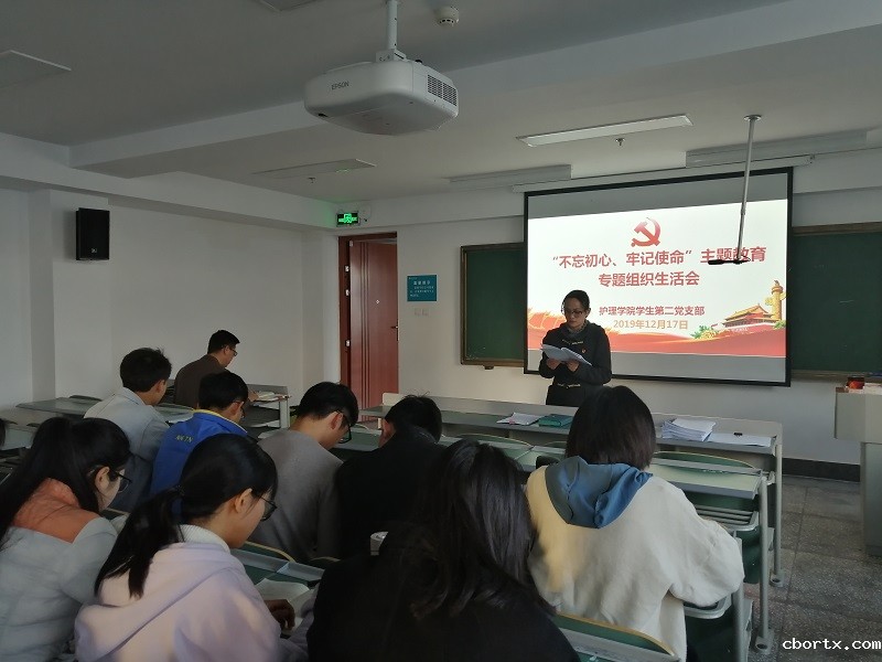 2019年12月17日,学生第二党支部于在平政校区知行楼403教室召开“不忘初心、牢记使命”专题组织生活会。护理学院党委副书记孙选平同志到会指导,党支部书记吴青同志主持,70名党员参会。通过这次专题组织生活会,党员同志们进一步增强“四个意识”、坚定“四个自信”、践行“两个维护”,更加明确了自己的整改和努力方向。