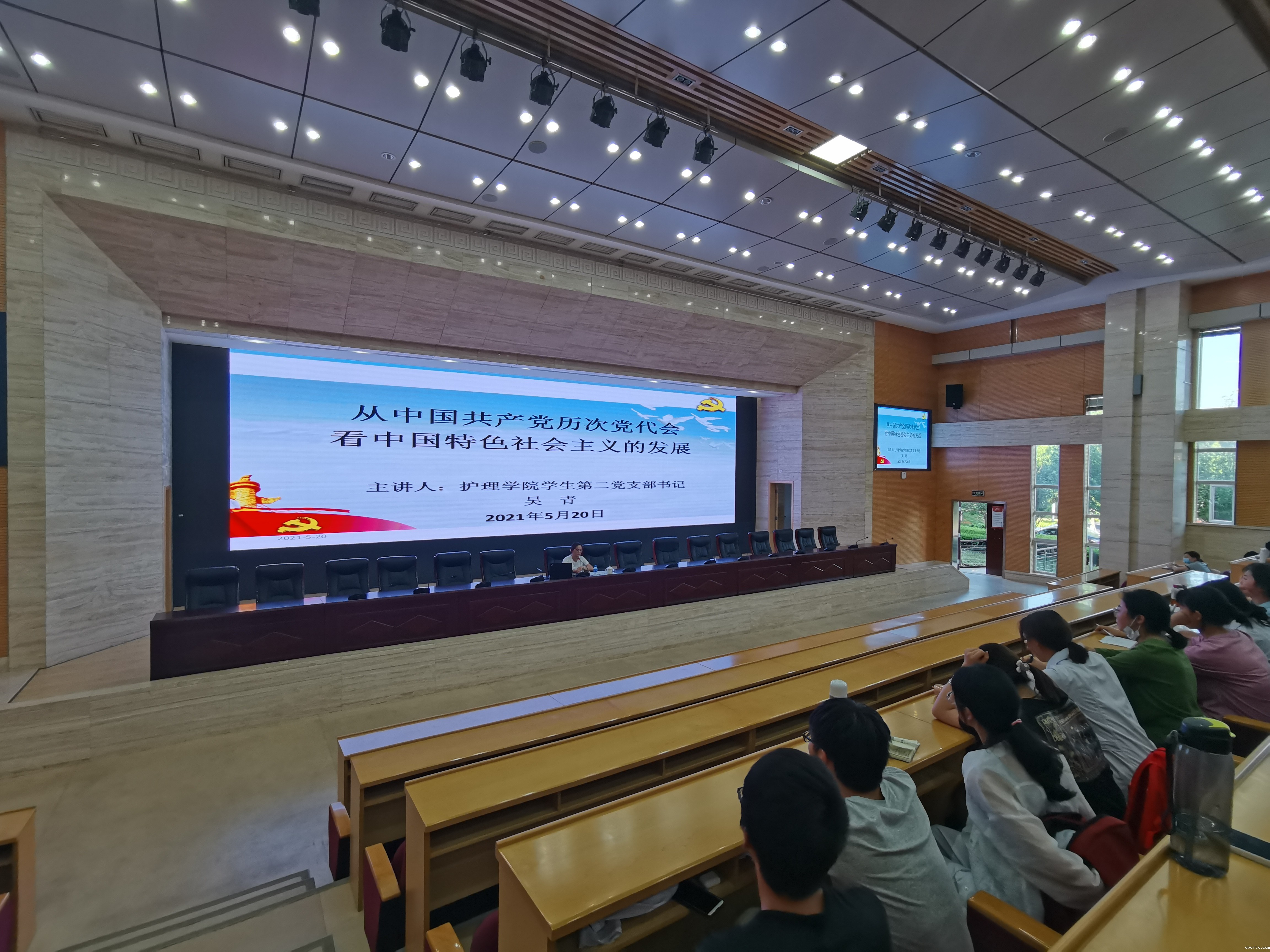 2021年5月20日,护理学院学生第二党支部在学术交流中心第一报告厅开展党史学习教育专题讲座,本次讲座由党支部书记吴青同志主讲,呈贡校区全体党员同志参与学习。