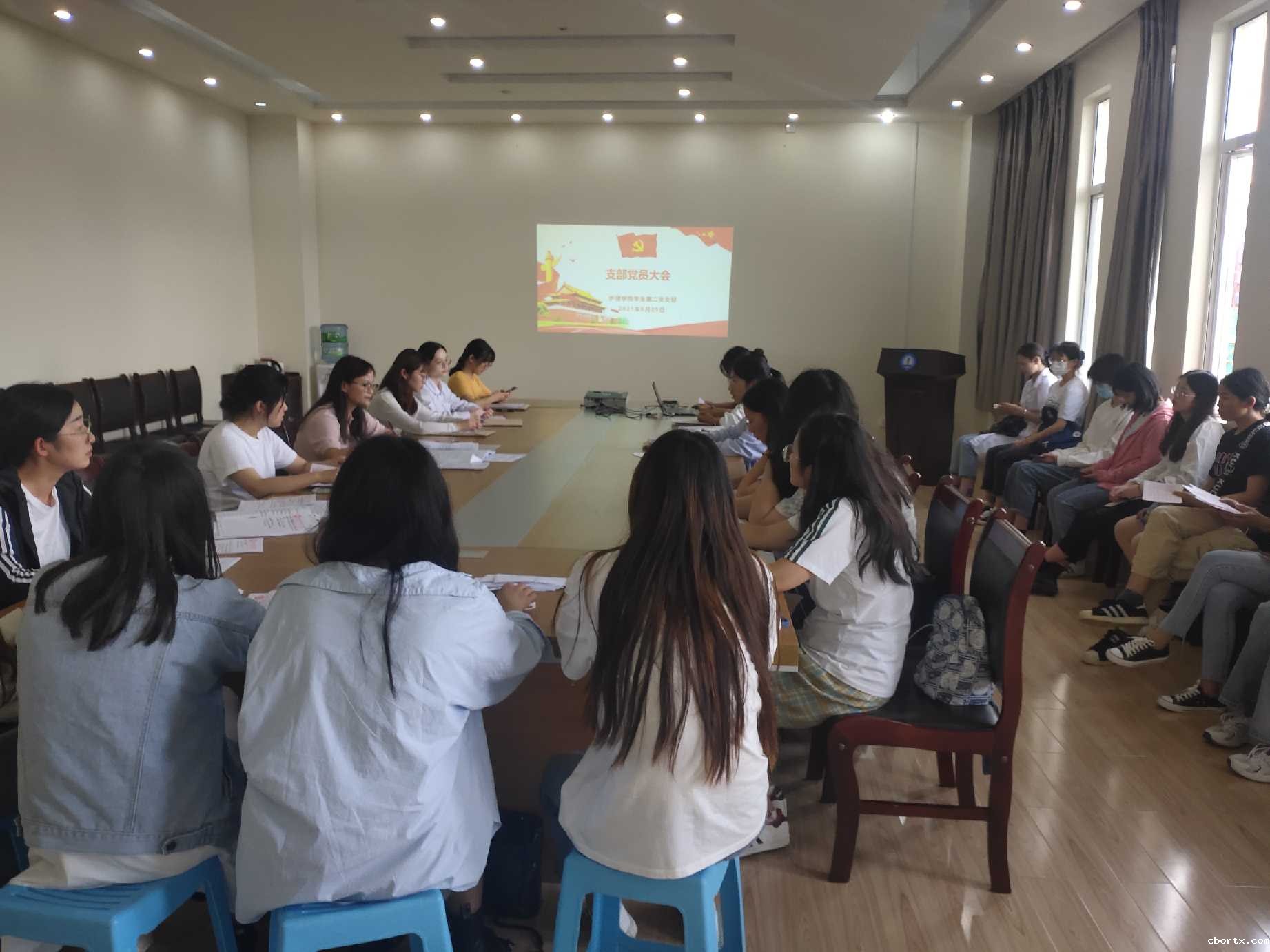 2021年6月29日下午,18luck备用登录护理学院学生第二党支部在护理学楼502会议室举行支部党员大会,讨论苏芮冬等11名预备党员转正问题,会议由党支部书记吴青主持,全体党员参加。