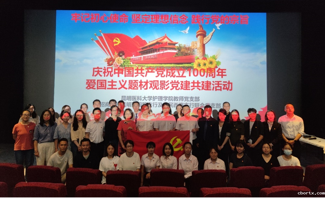百年征程波澜壮阔,百年初心历久弥坚。值此中国共产党成立100周年之际,18luck备用登录护理学院教师党支部与招商银行昆明西园路支行及人民西路支行联合党支部于2021年7月7日在版筑翠园国际影城开展了一次支部党建共建活动。