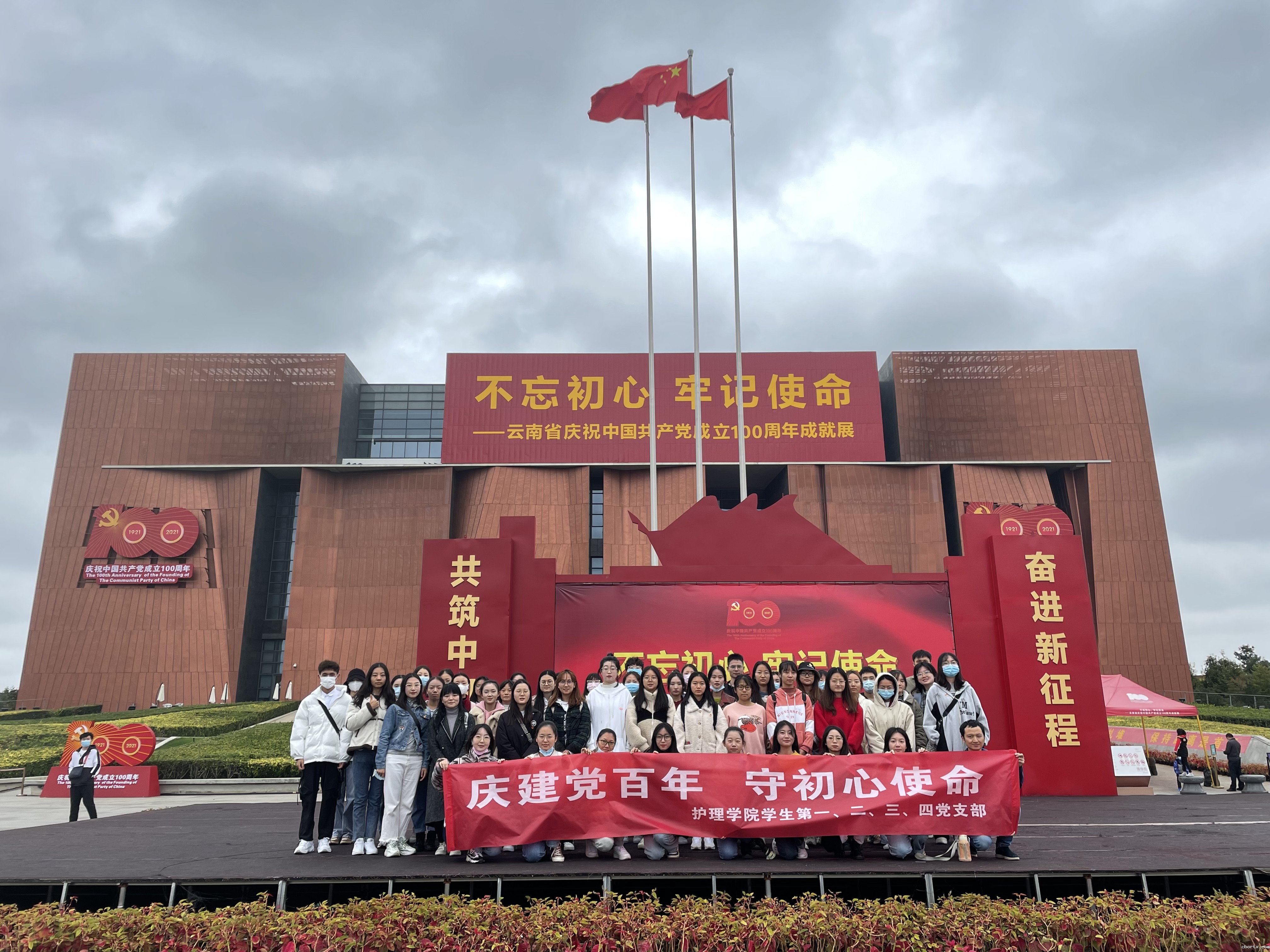 为了加强党史学习教育,巩固“不忘初心、牢记使命”意识,从而进一步提高党性修养。2021年10月17日上午,18luck备用登录护理学院学生第四党支部组织全体党员和发展对象50余人走进云南省博物馆,参观云南省庆祝中国共产党成立100周年成就展。