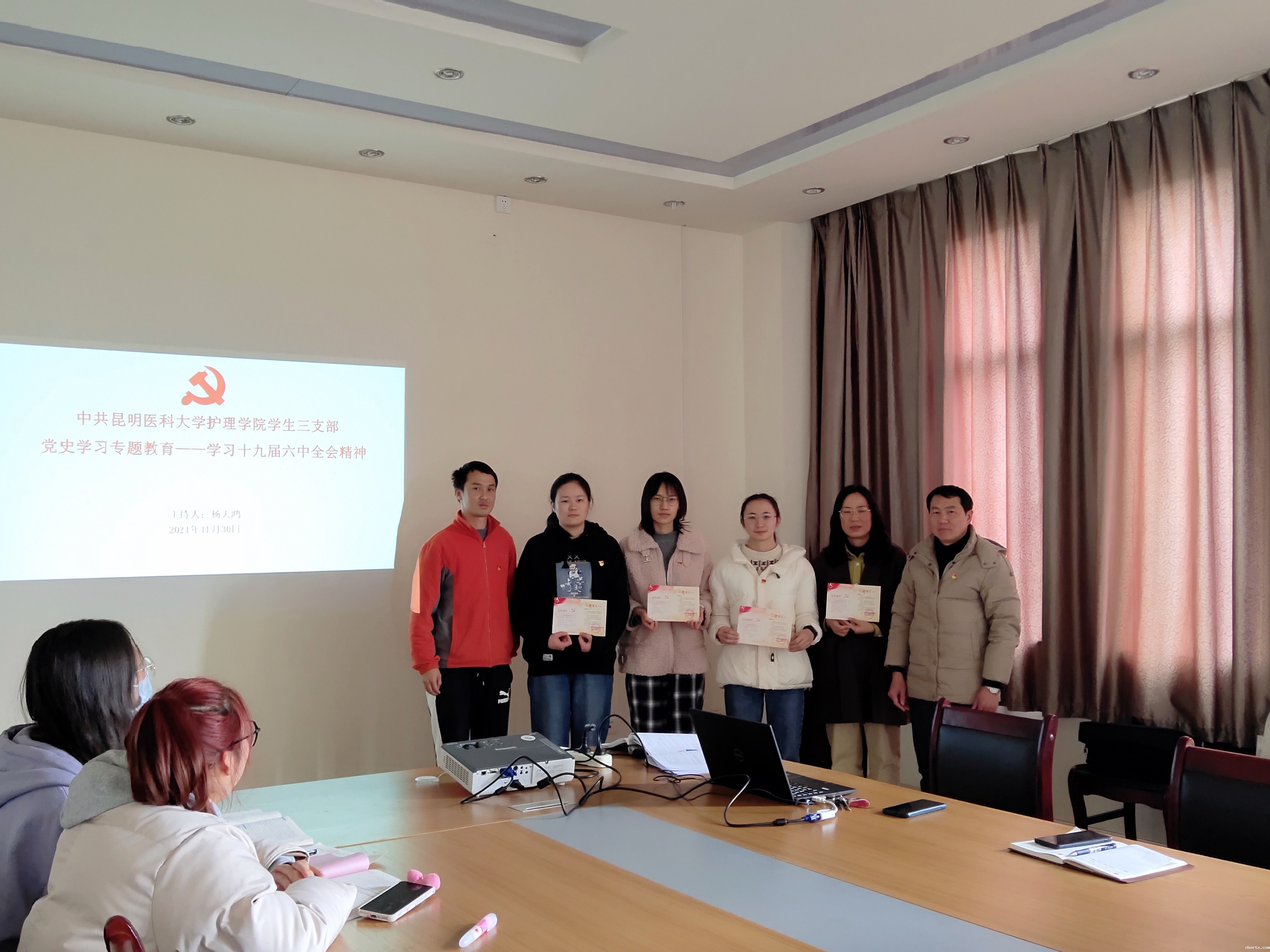 为深入贯彻落实学校、学院关于党史学习教育安排,加强对支部党员的日常教育管理,强化党性修养,切实做到学党史、强信念。护理学院学生第三党支部组织支部36名党员同志在护理学楼502会议室共同学习十九届六中全会精神。