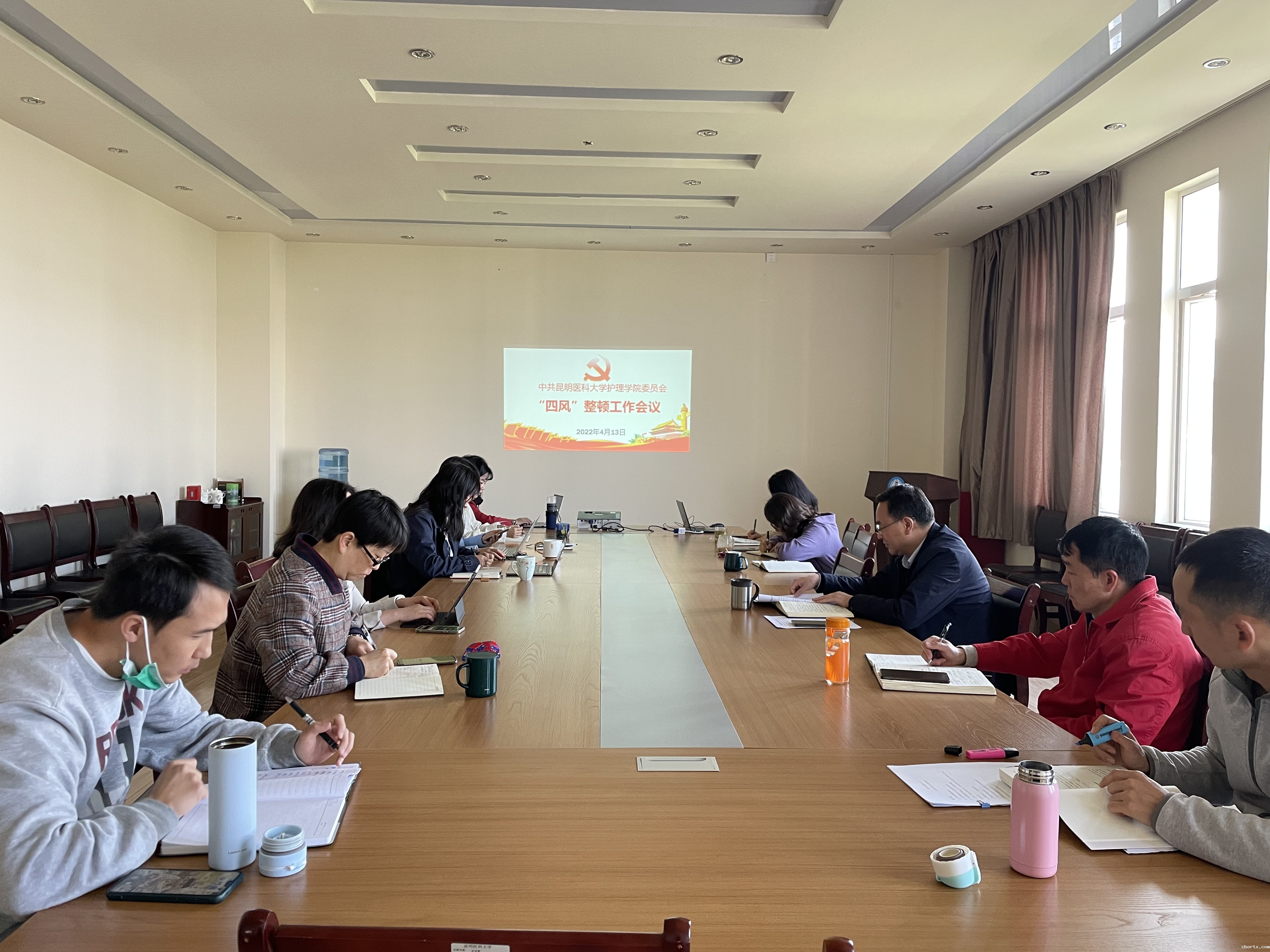 护理学院党委于2022年4月13日在护理学楼502会议室召开“四风”整顿工作会议,会议由学院党委书记姚树明主持,学院科级及以上干部参会。