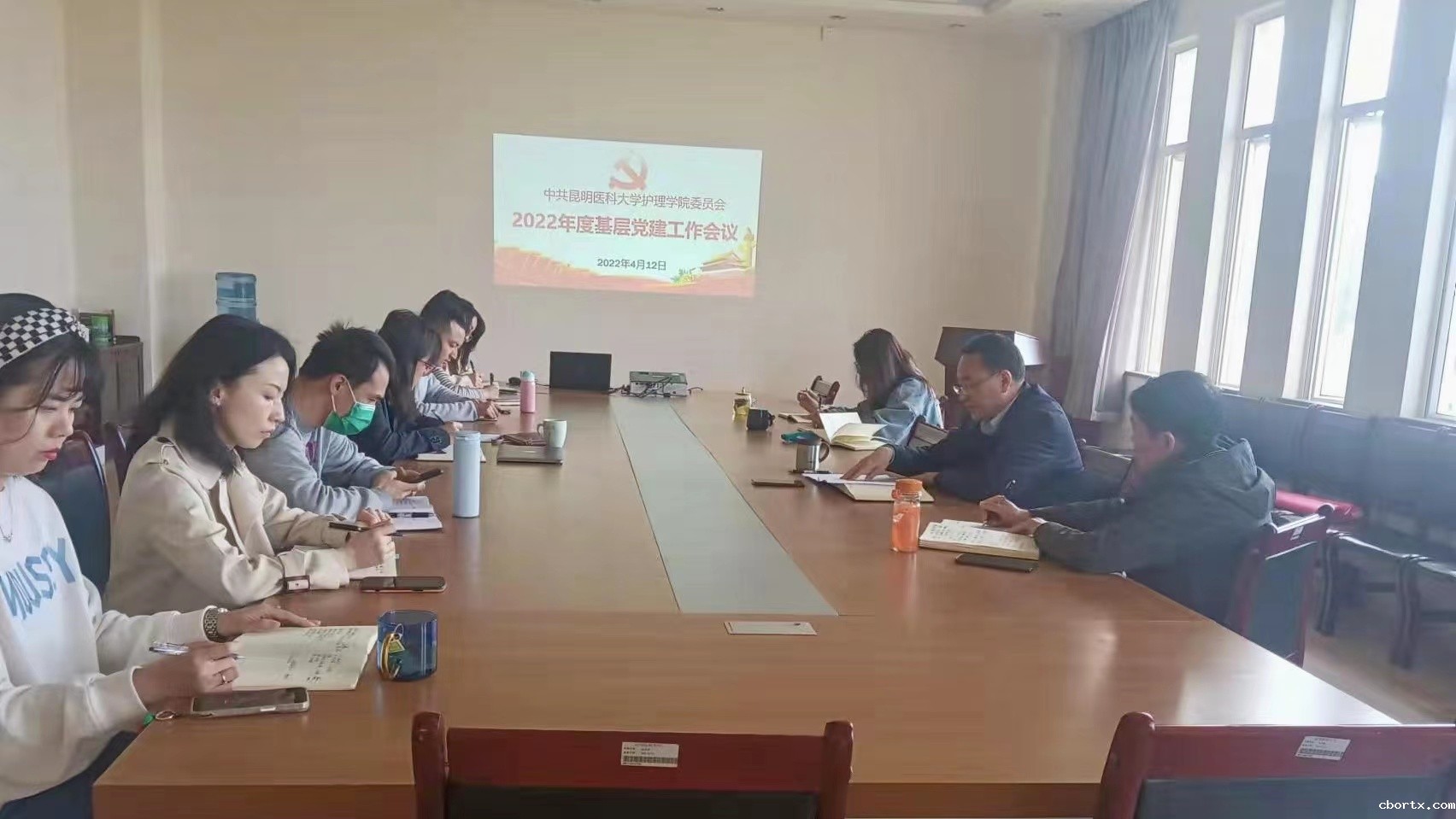 护理学院党委于2022年4月12日在护理学楼502会议室召开2022年度基层党建工作会议,会议由学院党委书记姚树明主持,学院党委班子成员、党支部书记、全体辅导员参会。