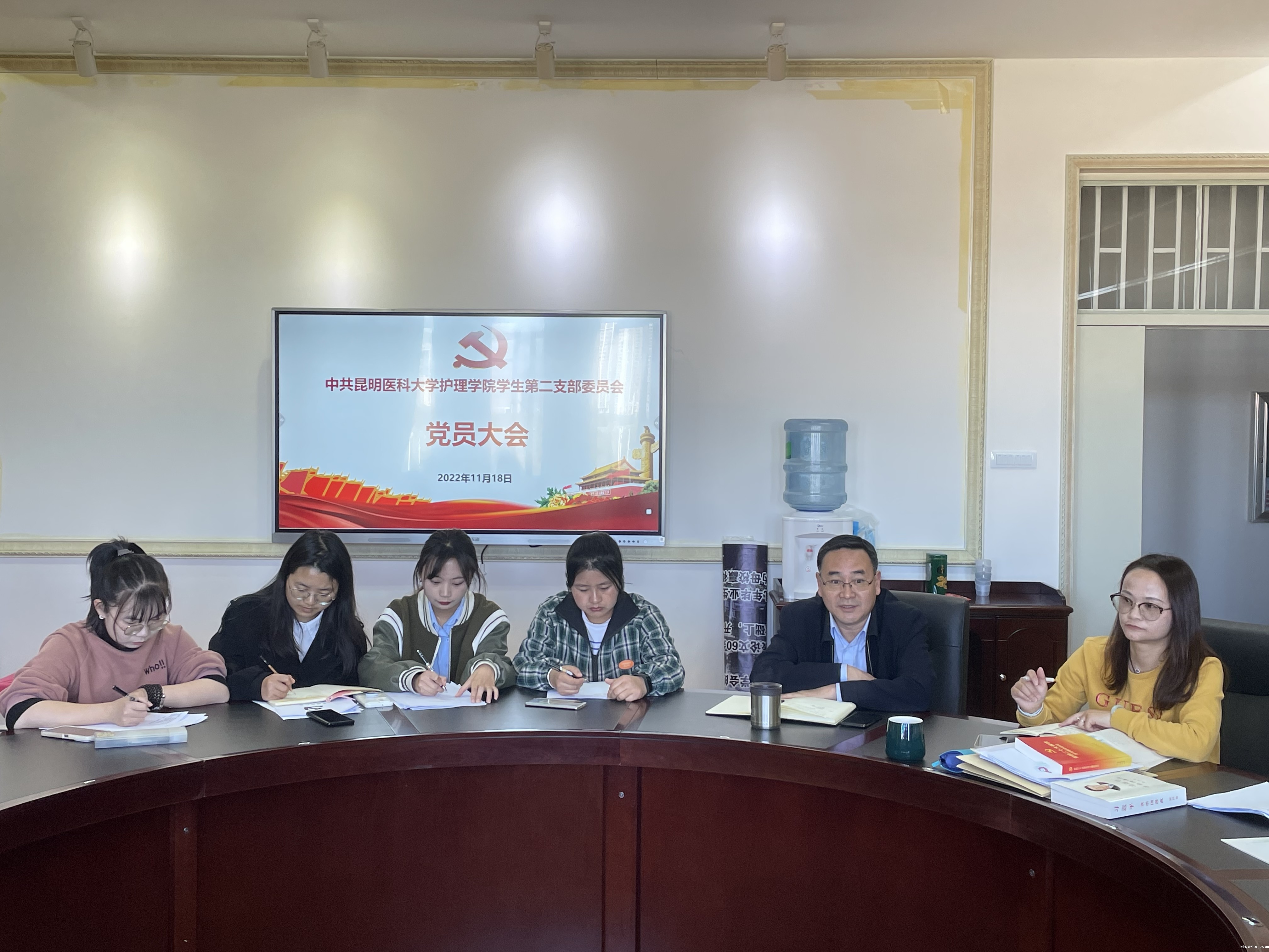 2022年11月18日,护理学院学生第二党支部在护理学楼504会议室召开党员大会讨论2022年秋季学期接收预备党员工作。会议由护理学院学生第二党支部书记吴青同志主持,护理学院党委书记姚树明同志、支部党员同志及4名发展对象参与此次会议。