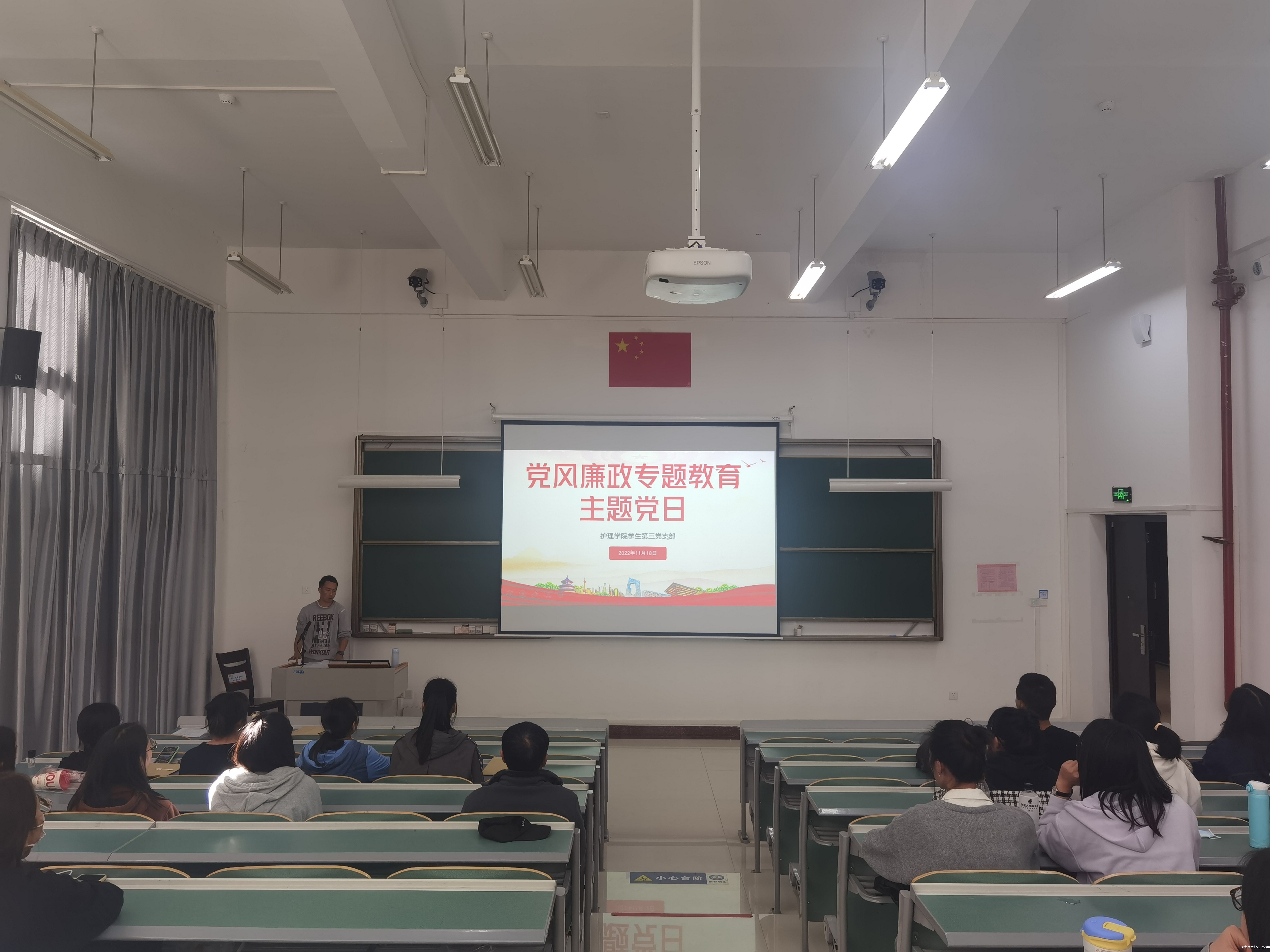 为了教育引导支部全体党员增强廉洁自律意识,增强拒腐防变能力,锤炼学习报国之志。11月18日下午,护理学院学生第三党支部在呈贡校区基础医药大楼104开展牢筑廉洁防线,建设清廉支部主题党日活动。活动由党支部书记杨天鸿主持,全体党员参加。