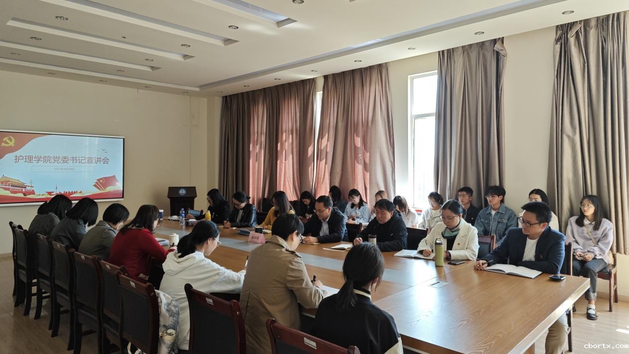 为深入学习贯彻党的二十大精神,在学院持续推进学习热潮凝聚奋进力量,3月24日下午,护理学院党委在护理学楼501教室开展学习党的二十大精神党委书记宣讲会。会议由学院党委书记姚树明主讲,副书记聂兆祥主持,学院师生党员、团员代表参加学习。