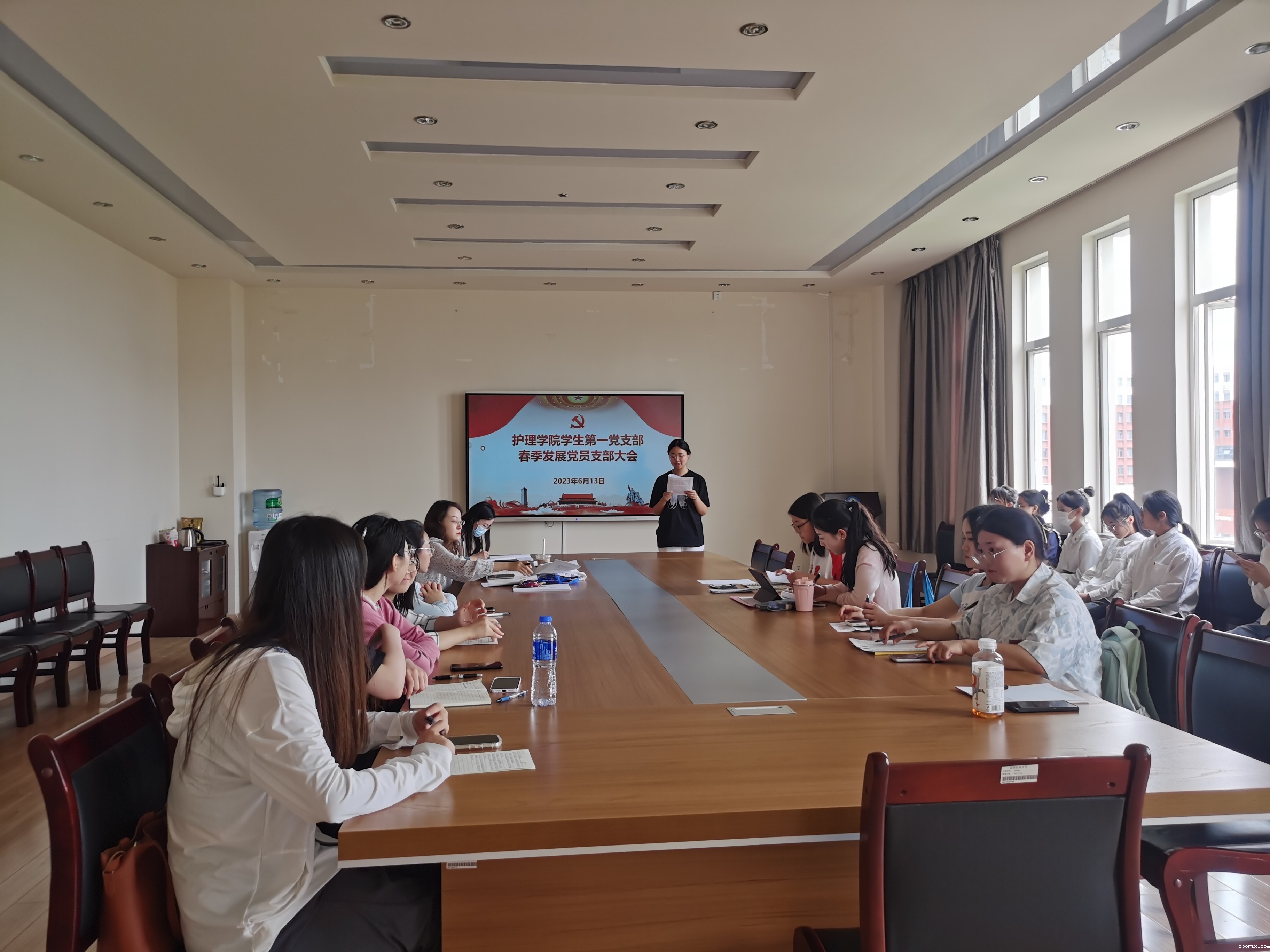 2023年6月13日下午,护理学院学生第一党支部在护理学楼502会议室顺利召开2023年春季学期发展党员大会,根据学院党委及支部发展党员工作计划,本次大会讨论了关于是否接收吉贤菊等9名同志成为预备党员的事宜,会议由党支部书记杨倩蓉主持,党支部全体成员参会。