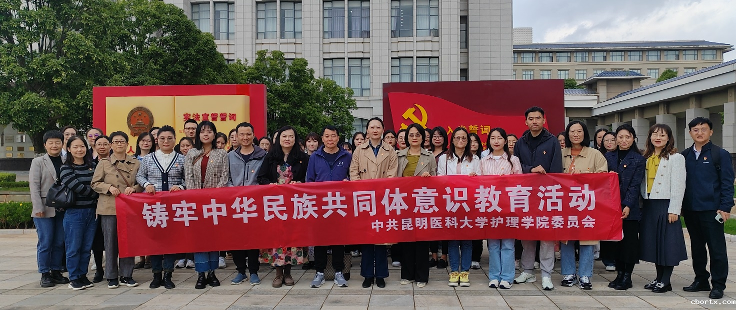 按照护理学院党委关于开展铸牢中华民族共同体意识教育活动的安排,由教师党支部牵头,联合学生第一、二、三、四党支部,于2023年11月6日下午到昆明市委党校“铸牢中华民族共同体意识”主题教育馆开展主题党日活动,护理学院党委书记杨国华、副书记聂兆祥、统战委员、副院长陶慧、各支部书记等师生党员共50人参加了活动。昆明市委党校法学教研部杨洲老师进行了讲解。