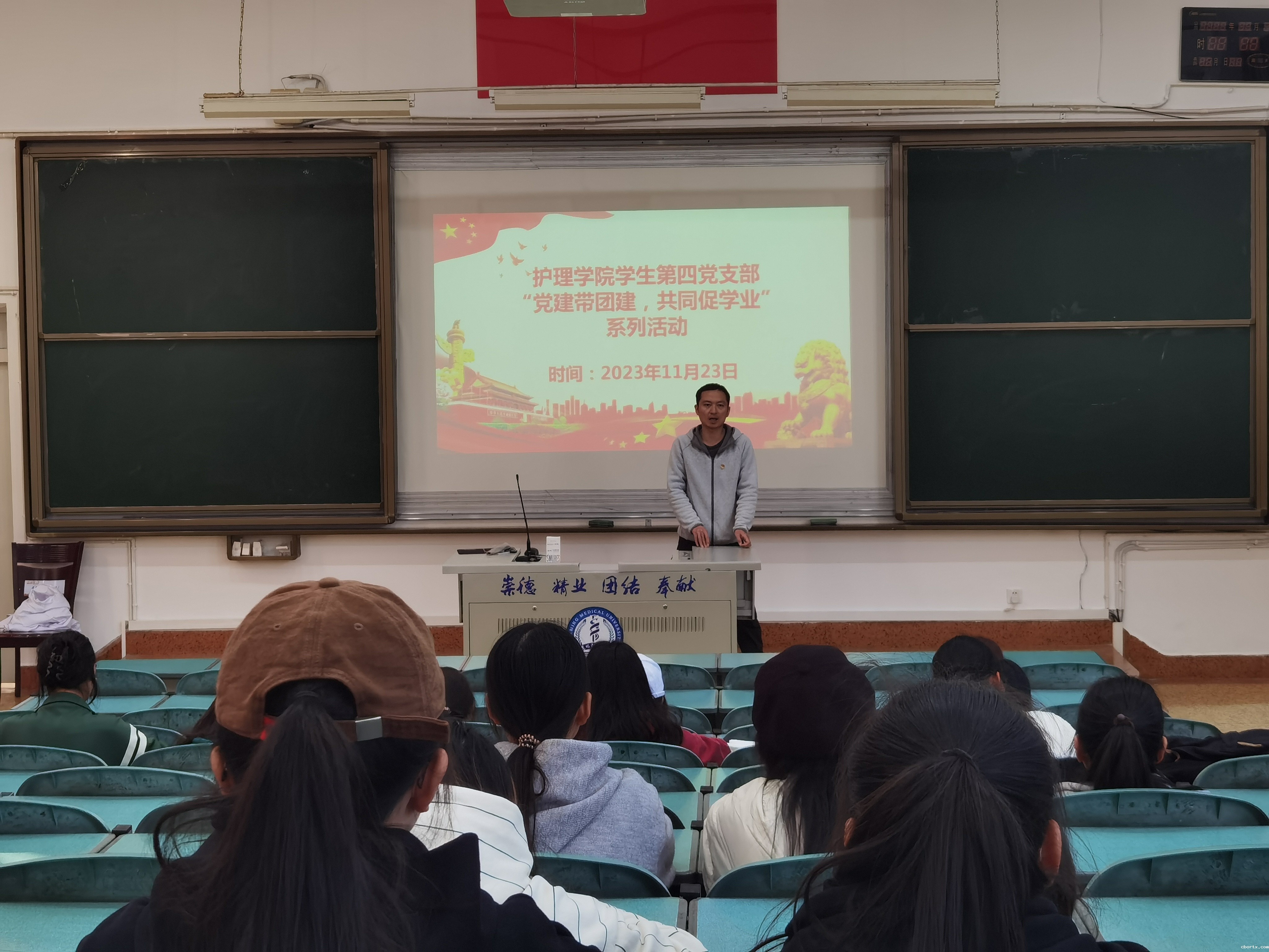 为充分发挥党建引领作用,教育引导2023级新生转变学习方式,2023年11月23日,护理学院学生第四党支部开展“党建带团建,共同促学业”第一次活动,针对2023级新生团支部开展大学英语四级学习经验分享交流会。本次活动由支部书记杨建平和组织委员张雯棋主持,支部党员、积极分子主讲。