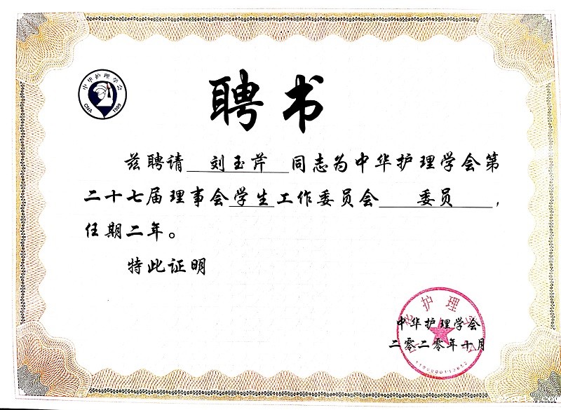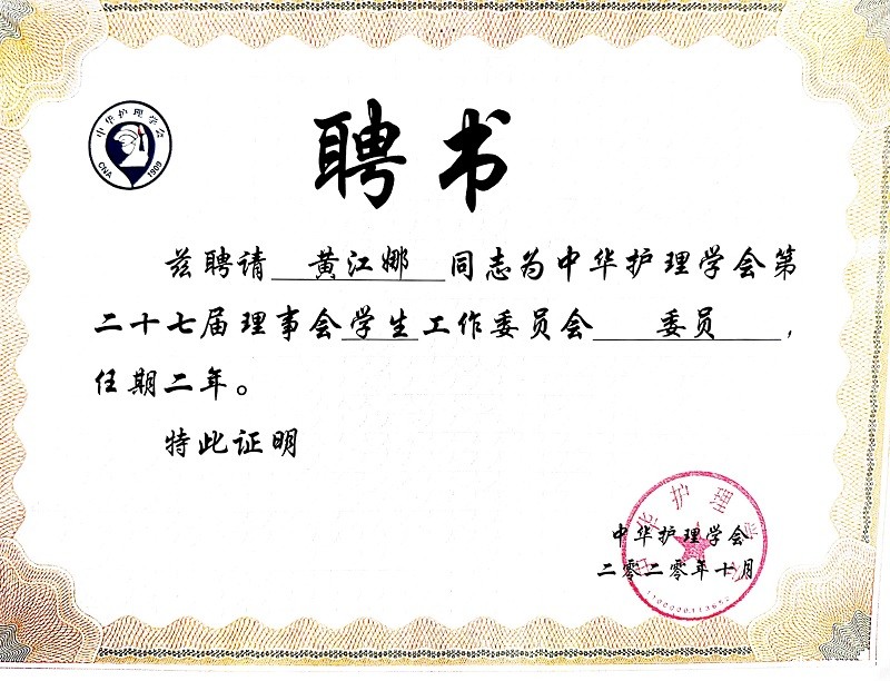 我校2位同学被聘为首届中华护理学会学生工作委员会委员