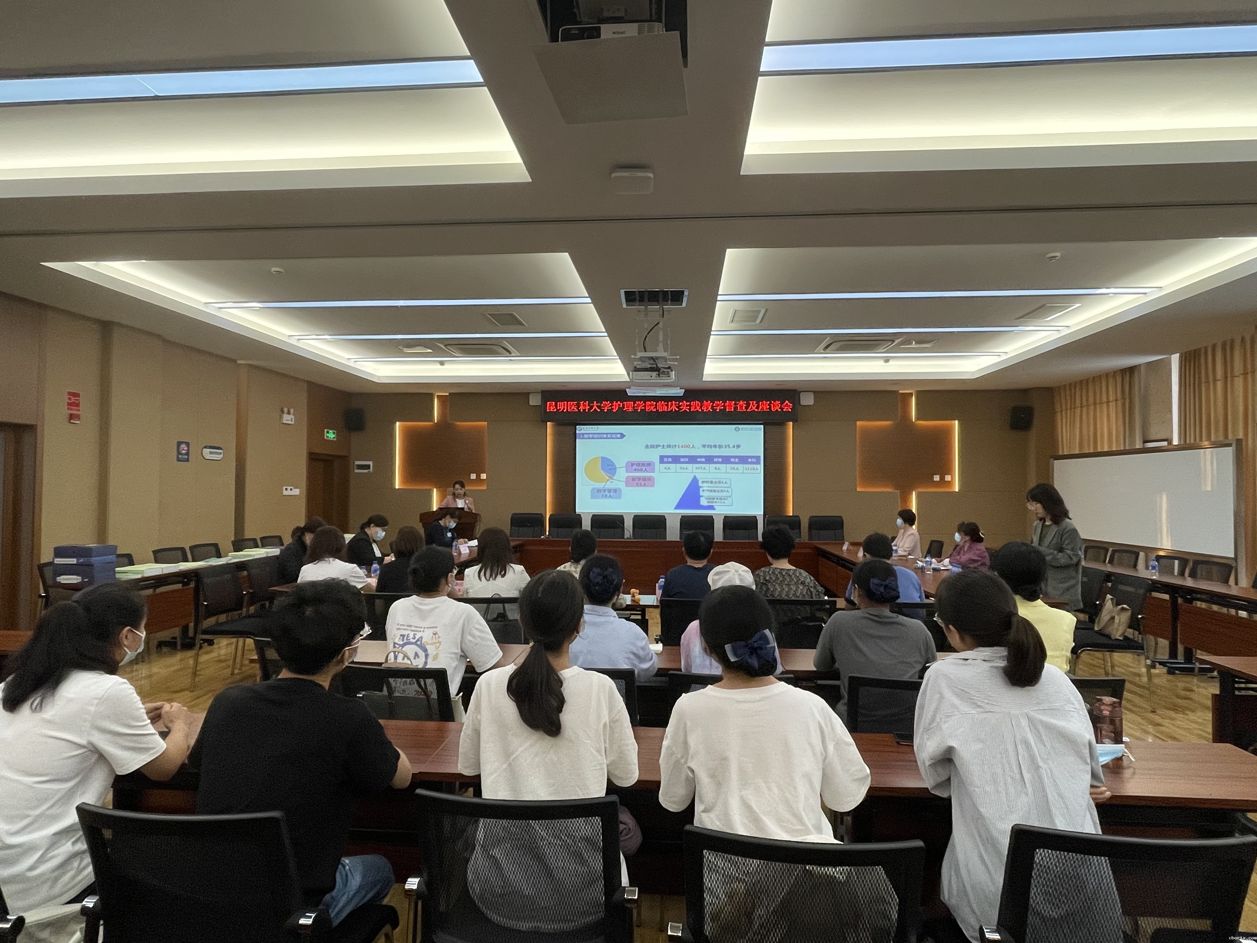各实践教学基地高度重视实践教学工作,分管实践教学院领导、护理部主任、护理教研室主任、教学秘书和临床带教骨干教师、学生代表参与了本次教学检查活动和座谈会意见反馈。实践教学督查小组先开展了与实习学生的座谈会,之后听取了各实践教学基地在护理实践教学中的组织管理、制度建设、师资队伍建设、质量控制等方面的介绍,开展了护理教研室及各带教科室实践教学执行、质量控制及改进等各环节的全面督查,最后在师生座谈会上针对督查问题进行了反馈,并听取了临床实践教学教师的意见和建议。