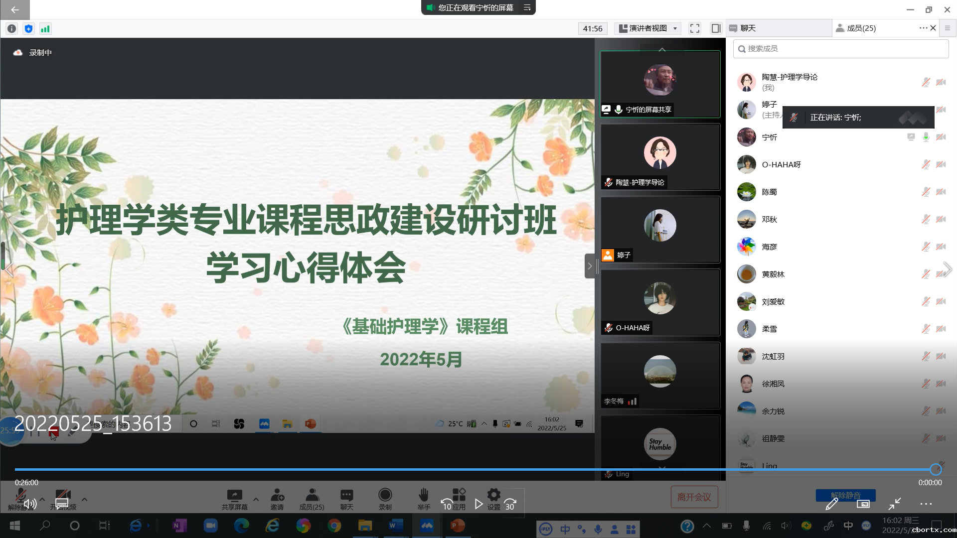 为进一步贯彻落实教育部《高等学校课程思政建设指导纲要》要求,学习了解教指委《护理学类专业课程思政教学指南》的总体设计思路,积极响应学校推进课程思政建设的号召,学院组织各课程组教师报名参加了北京大学护理学院主办的《护理学专业课程思政建设研讨班》,为了更好地传播学习成果,促进各课程组之间的交流分享,同时针对专业特点做好党建工作与教学工作的结合,5月25日学院教学办、基础护理学系、教师党支部联合开展了一次课程思政大讨论。讨论会由学院副院长陶慧主持,采用线上线下相结合的方式进行。学院张颖院长、教学办及各系部教师代表、内蒙古医科大学进修教师近20人参与了线下会议,其余系部教师与附属医院临床教师20余人参与了线上会议。