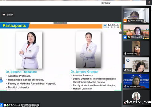 18luck备用登录与泰国玛希隆大学合作举办护理学本科教育项目2021-2022学年教学工作已圆满完成,为及时与泰方沟通反馈教学意见,总结本学年教学工作,研究部署下一步工作安排,护理学院于2022年6月29日召开了2021-2022学年中外合作办学项目教学工作会。本次会议邀请了泰国玛希隆大学Jumpee博士、Streerut博士,护理学院院长张颖、副院长陶慧、教学办、基础护理学系、临床护理学系、护理技能实验中心负责人、本学年专业课中泰合作授课课程负责人、外事秘书等人员参会。会议由副院长陶慧主持。