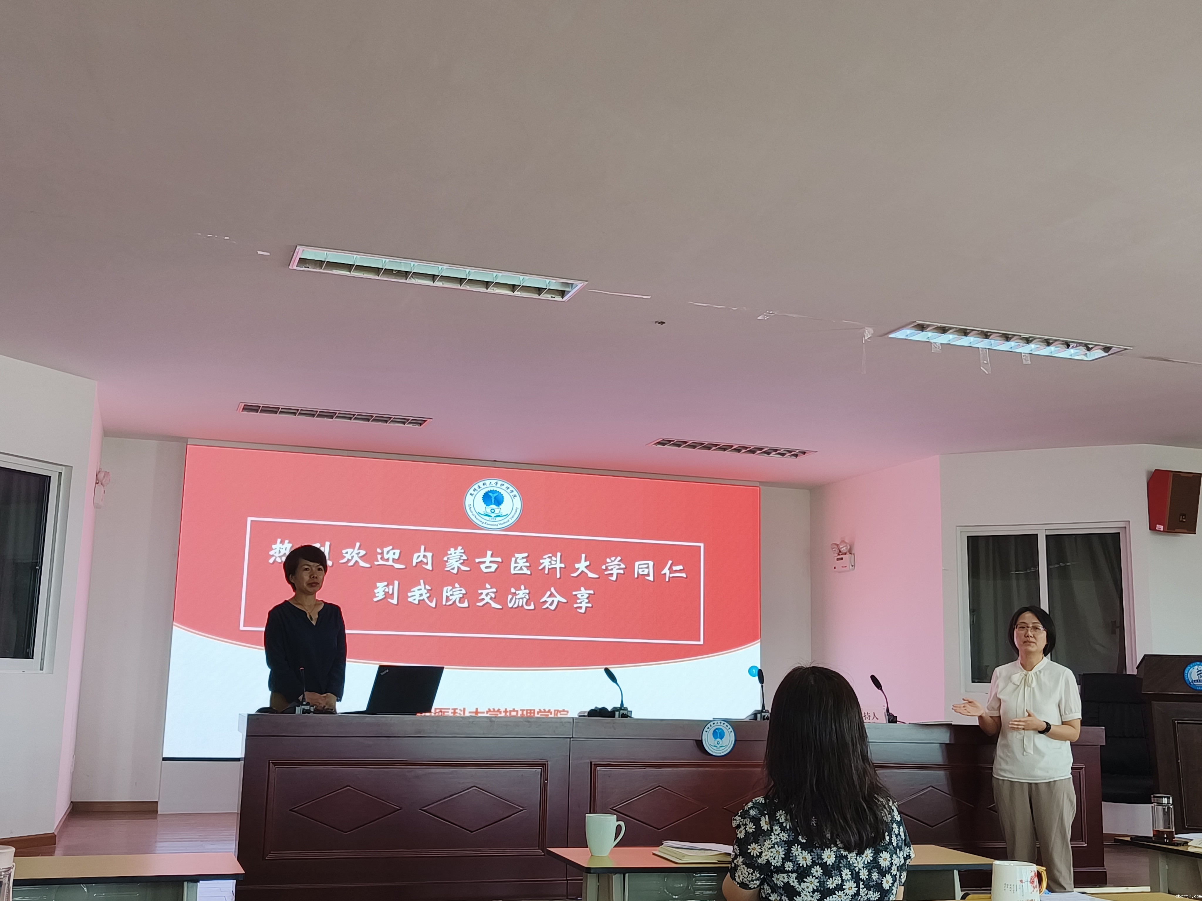 为持续促进护理教师专业素质与教学水平的提高,不断更新教学理念与方法,加强与其他高校的沟通合作,促进共同成长,2022年7月4日,护理学院邀请内蒙古医科大学护理学院到我院进修的护理同仁进行了教学经验交流。会议由护理学院副院长陶慧主持,护理学院副院长卢玉林、教学办、学科办及各系部中心教师参加了交流会。