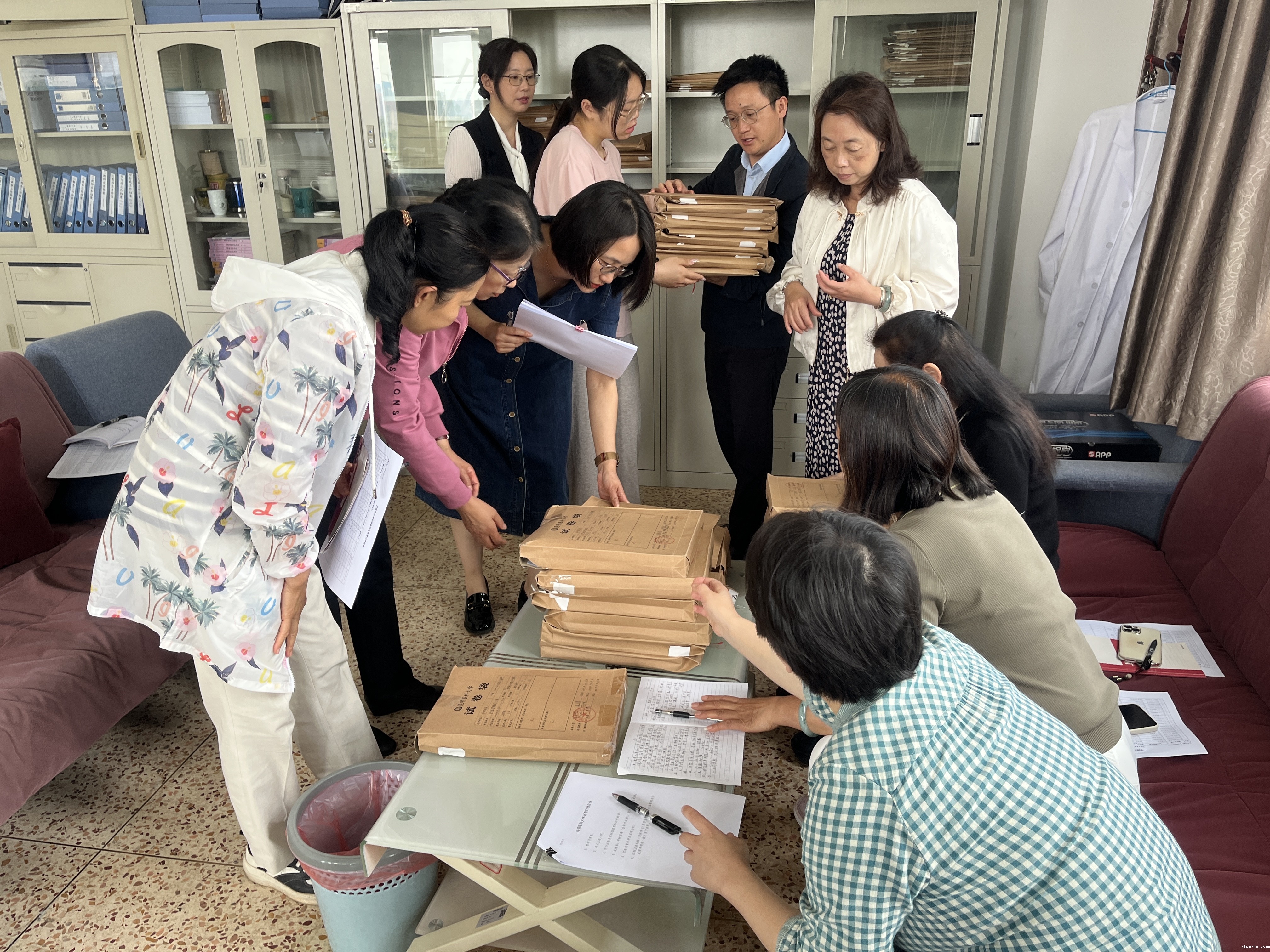 为强化课程考核质量,进一步规范加强我院课程考核环节的管理,提高教学质量,按照18luck备用登录教学质量监控与评估中心《关于对近三年课程考核质量开展专项检查的通知》要求,护理学院组织院级督导专家梁桂仙、刘红、杨芬、徐正英于2024年5月22日对学院各教研室承担的各门课程的考核资料进行现场检查,院长卢玉林、副院长陶慧、教学办全体人员、各教研室主任和秘书到场。
