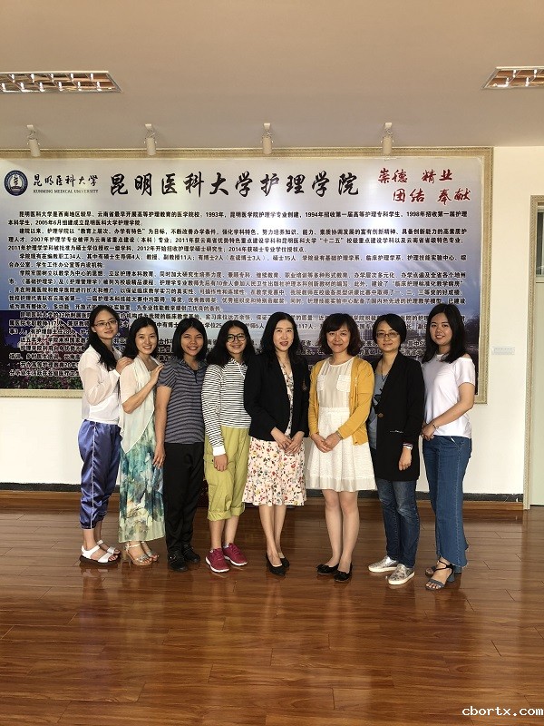 2018年6月20日,泰国宋卡王子大学护理学院教师Benyapa博士及两名本科生一行三人到我院进行学术交流访问。学院副院长卢玉林、基础护理学系副主任陶慧,外事秘书化卉及我院学生代表热情接待了泰国来宾。泰方一行参观了我院护理技能实训中心,并对我院与时俱进的发展理念、良好的学习环境及先进的医疗、教学设备给予了极高的评价和赞美。随后,Benyapa博士参观了护理学院荣誉室,卢玉林副院长向泰方介绍了护理学院的发展历程,回顾了双方多年来的深厚友谊,双方师生合影留念并互相赠送了纪念品。