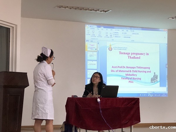 当天下午,Benyapa博士在护理学楼501报告厅为我院师生进行了题为“Teenager pregnancy in Thailand”的学术讲座。讲座中,Benyapa博士介绍了泰国青少年怀孕现状及导致其出现的原因,针对其原因从教育体制、处理方式、家庭社会支持等多方面阐述解决的具体措施。讲座结束参会人员针对讲座内容进行提问,Benyapa博士耐心解答,现场讨论气氛活跃,参会人员受益匪浅。最后泰国两位学生带领所有参会人员做放松操结束此次讲座。讲座结束后,Benyapa博士对学院的热情接待表示感谢,同时也表达了双方日后加强交流与合作的美好愿景。