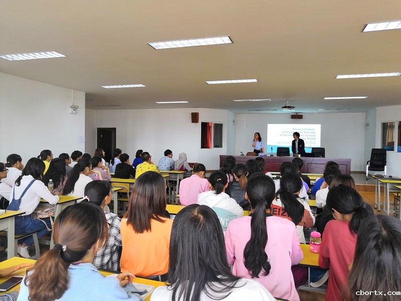 当天下午,中泰师生在护理学楼501报告厅为进行了课堂交流。Pajongsil Perngmark副教授介绍了老年护理的相关知识,针对老年人的特点开展现场问答互动,让同学们切实感受到了老年护理学的魅力。同时随访的研究生对泰国的推拿按摩(massage)治疗进行了现场演示,同学们也积极参与其中,该活动极大地激起了同学们的学习热情,现场气氛活跃而热烈,此次讲座让参会人员受益匪浅。