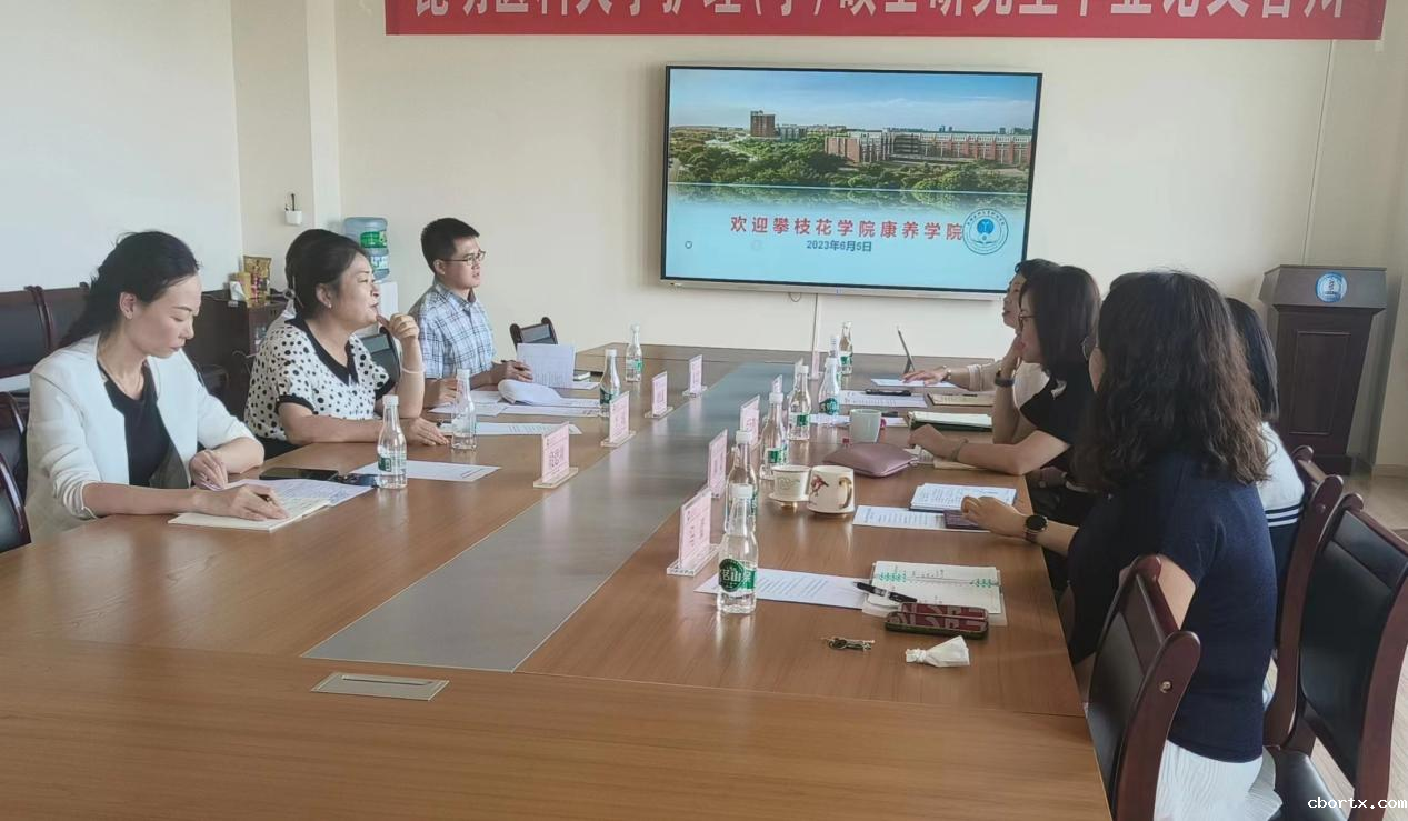 2023年6月5日,攀枝花学院康养学院院长兰玛、教研科科长刘松鑫、护理教研室主任段思羽、教师代表安文红一行4人到我院交流。我院副院长(主持工作)卢玉林、副院长陶慧及教学管理办公室主任、教研室主任、教师代表共6人参与了此次交流。