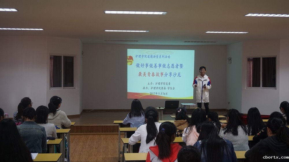 为鼓励同学积极参加公益志愿活动,传播正能量,积极投身公益志愿活动,培育和践行社会主义核心价值观。11月16日下午,护理学院在学校呈贡校区护理学楼开展护理学院道德讲堂“做好事做善事做志愿者”暨最美青春故事分享交流会,道德讲堂由学院党委主办,学院团委和院学生会承办,学院呈贡校区各团支部共计100余人参加。