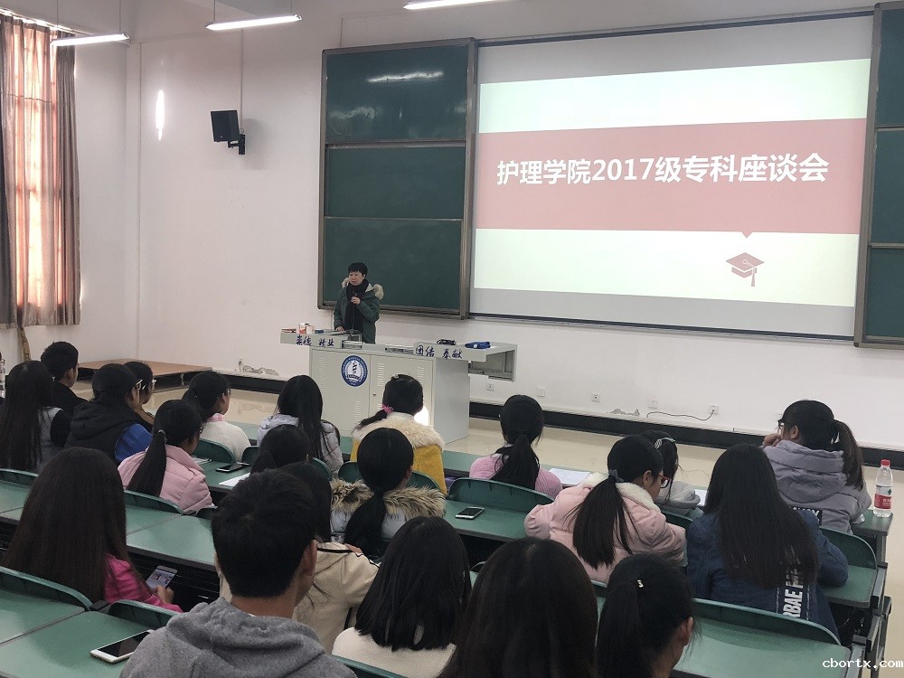 12月20日,护理学院在东校区大教室四召开2017级新生座谈会,护理学院党委副书记陶玲、2017级专科辅导员化卉以及2017级专科全体同学参会。
