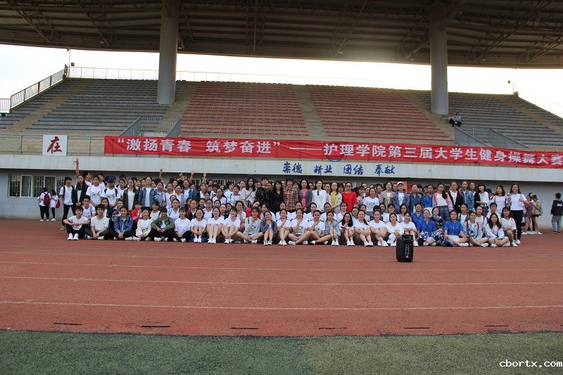 为纪念共青团建团96周年、五四运动99周年,积极响应团中央“走下网络,走出宿舍,走向操场”的号召,献礼18luck备用登录85周年校庆,5月8日下午17:20,护理学院“激扬青春 筑梦奋进”第三届大学生健身操舞大赛在学校呈贡校区西苑体育场举办,18luck备用登录副校长徐绍琼、18luck备用登录学生工作处副处长杨俊芬、护理学院党委书记唐敏、党委副书记陶玲、护理学院学生工作办公室的老师们莅临比赛现场担任大赛评委,护理学院1100余名学生参加此次大赛。